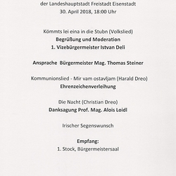 Am 30. April 2018 wurden im Eisenstädter Rathaus nach einem Beschluss des Gemeinderates Ehrenzeichen der Landeshauptstadt Freistadt Eisenstadt an langjährige Sängerinnen und Sänger des Chores der Haydnkirche verliehen.