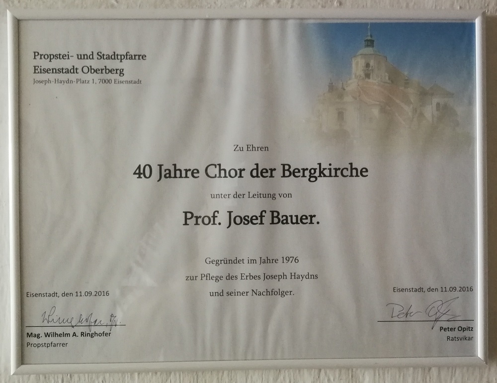 Am 11. September 2016 feierte der CHOR der BERGKIRCHE sein 40 jähriges Bestehen. Die Festmesse wurde mit der MARIAZELLERMESSE von J. Haydn musikalisch umrahmt.