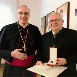 Am 24. Februar 2017 überreichte Bischof Dr. Ägidius Zsifkovics die päpstliche Auszeichnung R i t t e r vom Orden des hl. Papstes S i l v e s t e r an Mag. Josef Bauer für sein verdienstvolles kirchenmusikalisches Wirken und seine Tätigkeiten im kirchlichen Bereich.