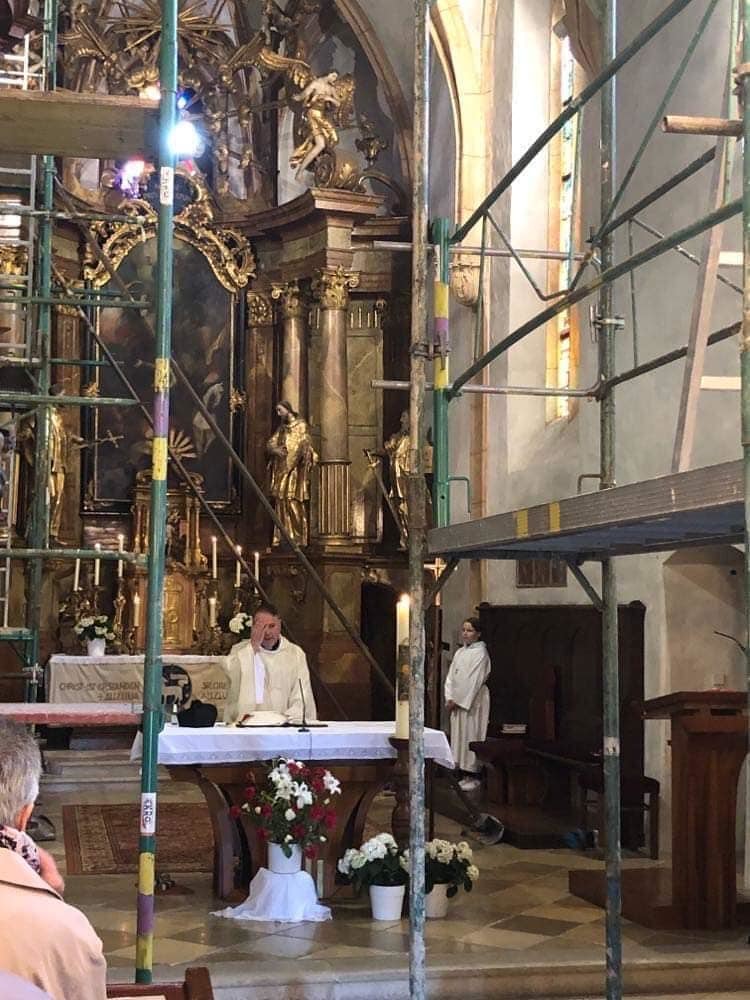 Befundung für Restaurierung der Kirche - Heilige Messe trotz Gerüst