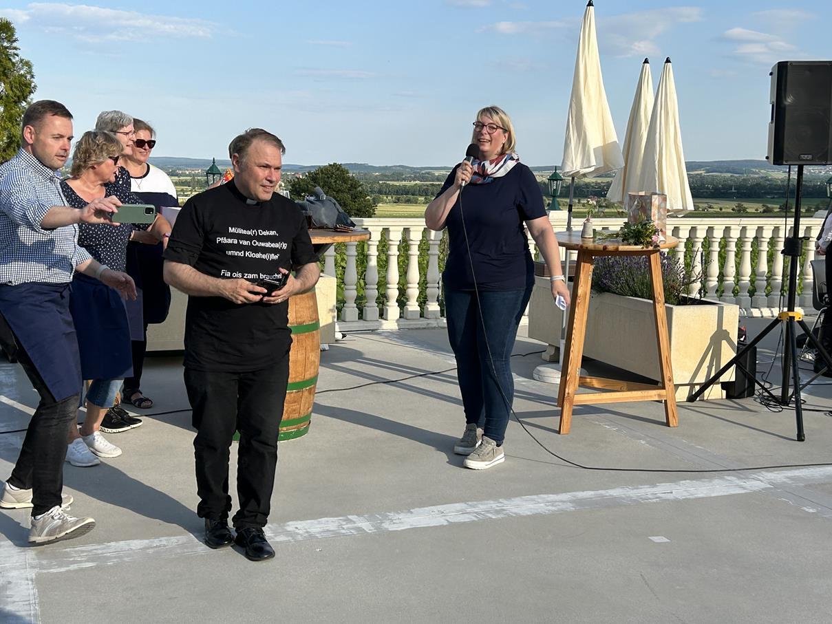 Man gratuliert zwar nicht im vorhin, aber bei einem besonderen Geburtstag fängt man früher an und hört später auf. Deshalb nutzten wir diesen herrlichen Rahmen des Pfarrfestes, um unserem Pfarrmoderator Alexander Wessely zu seinem anstehenden 50. Geburtstag zu gratulieren (ah „30.“ wie er sagt ;-))