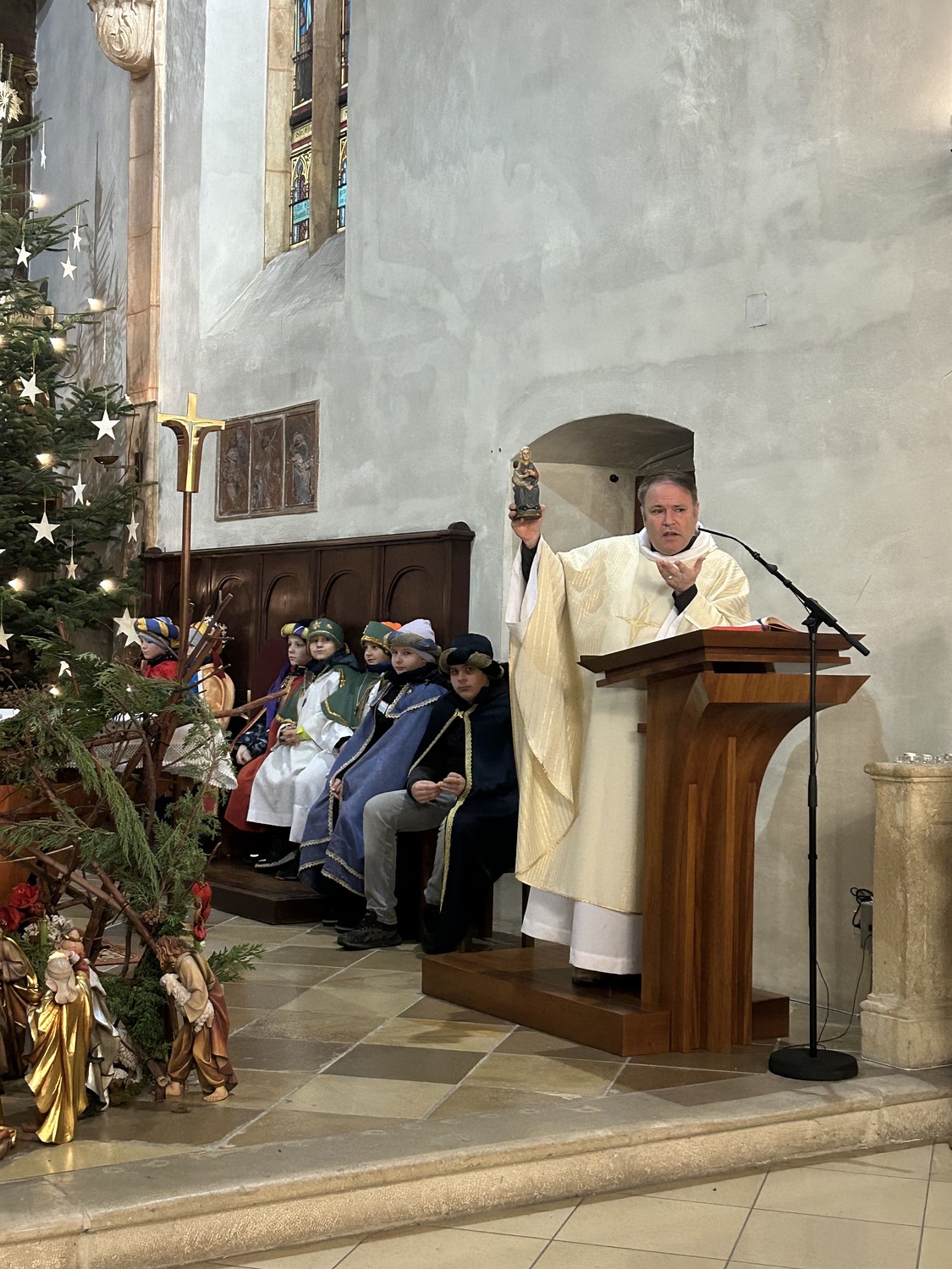 Beim feierlichen Gottesdienst haben sie ihre Sprüche aufgesagt und ihre Lieder gesungenen. Nach dem Segen machten sie sich auf den Weg, um allen Gottes Segen als Sternsinger zuzusprechen.