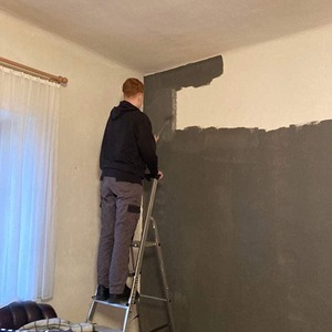 Für eine Wand wurde grau ausgewählt, alle anderen werden weiß gestrichen, natürlich durch unsere Jugend selbst.