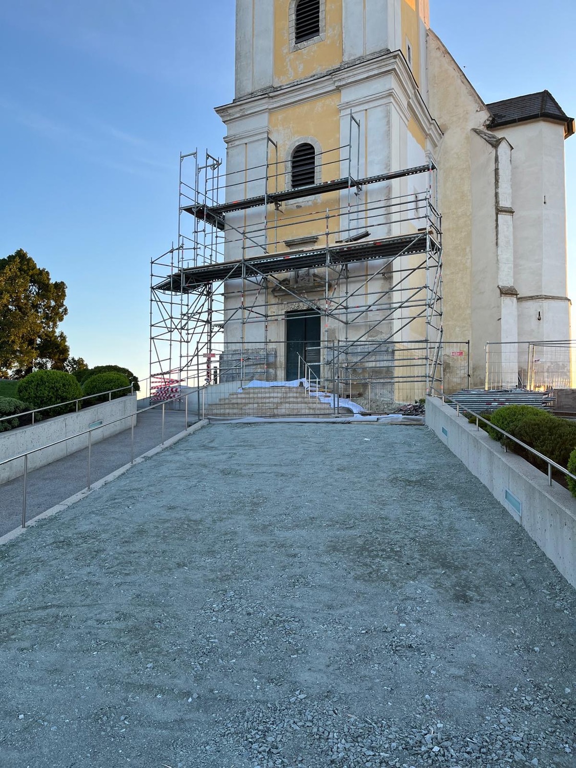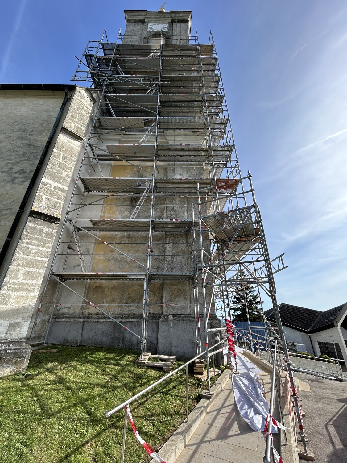 Die Gottesdienste finden auch während der Turmrenovierung in der Pfarrkirche statt.