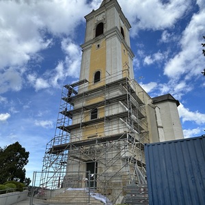 Es ist großartig, dass trotz des starken Windes, aber bei Sonnenschein mit dem Aufbau des Gerüsts begonnen werden konnte. Hoffentlich bleibt das Wetter stabil, damit die Arbeiten gut voranschreiten.