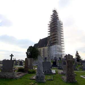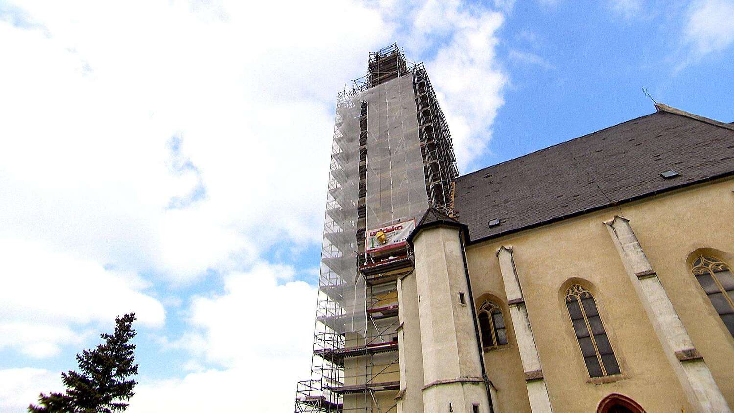 Der Kirchturm von Kleinhöflein, einem Ortsteil von Eisenstadt, wird umfassend saniert und renoviert. Zwei Wochen lang wurde nur das Gerüst aufgebaut, nun konnte mit den Arbeiten begonnen werden.
