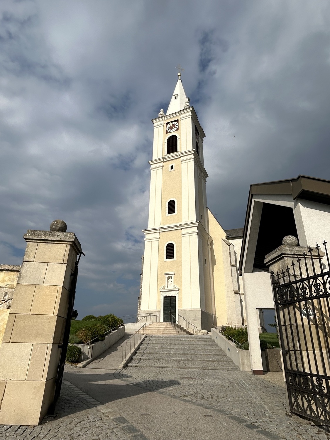 Anschließend gibt es eine Prozession zu unserer Pfarrkirche in Kleinhöflein, wo Pfarrer Alexander den neu renovierten Kirchturm sowie den neu gestalteten Pfarrhofplatz segnet.