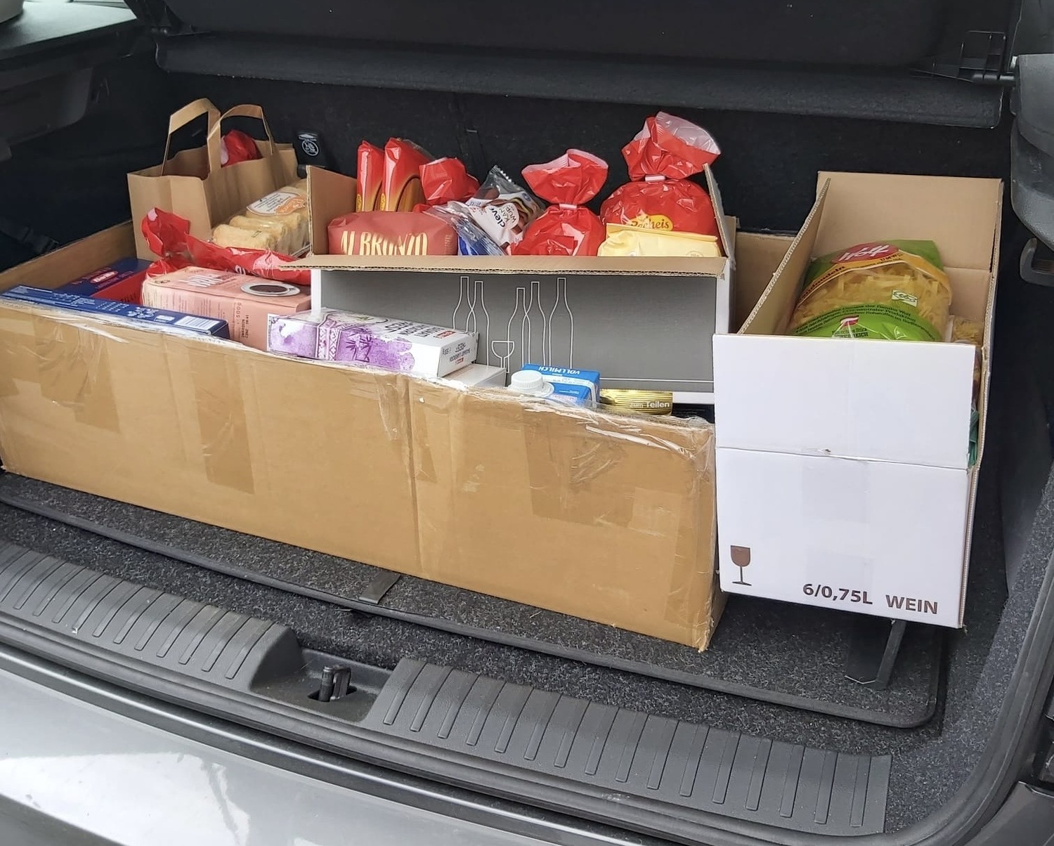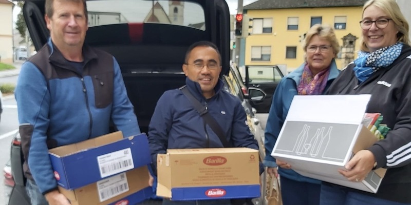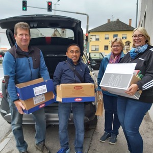 Beim Erntedankfest am Sonntag waren die Körbe vor dem Altar leer. Diese wurden mit mitgebrachten Gaben befüllt, welche heute mit einer kleinen Spende an die Pannonische Tafel übergeben wurden.