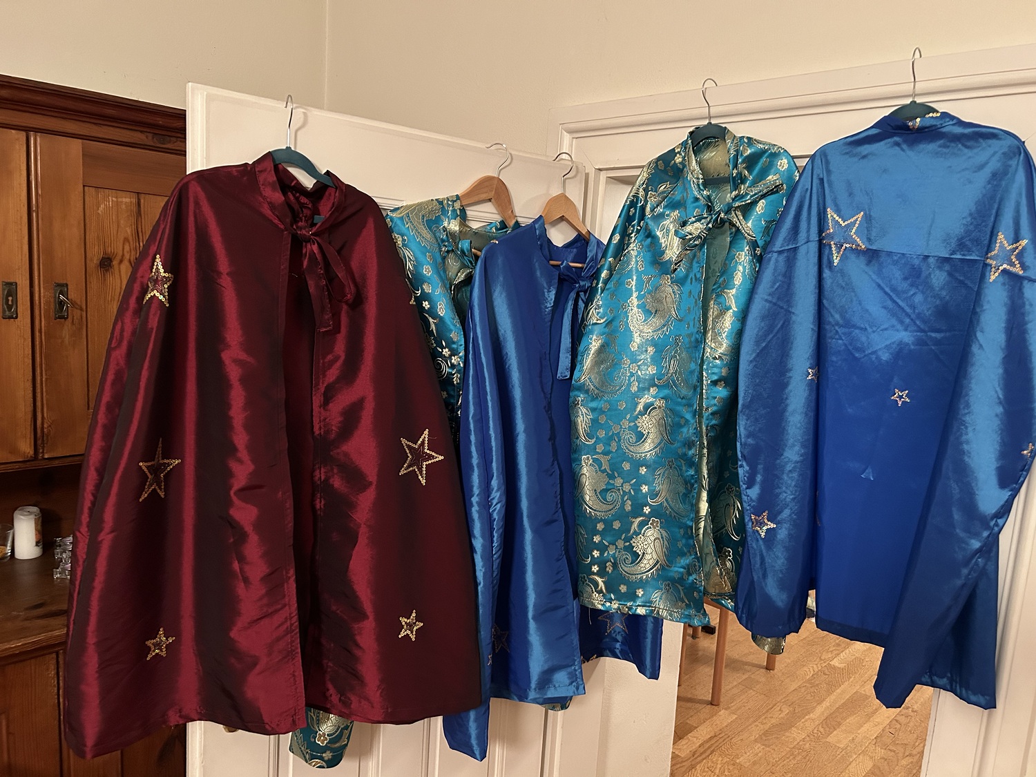 Da einige unserer Sternsinger-Gewänder bereits  in die Jahre gekommen sind,  haben sich ein paar freiwillige Frauen zusammengetan, um in liebevoller Handarbeit neue Umhänge anzufertigen!