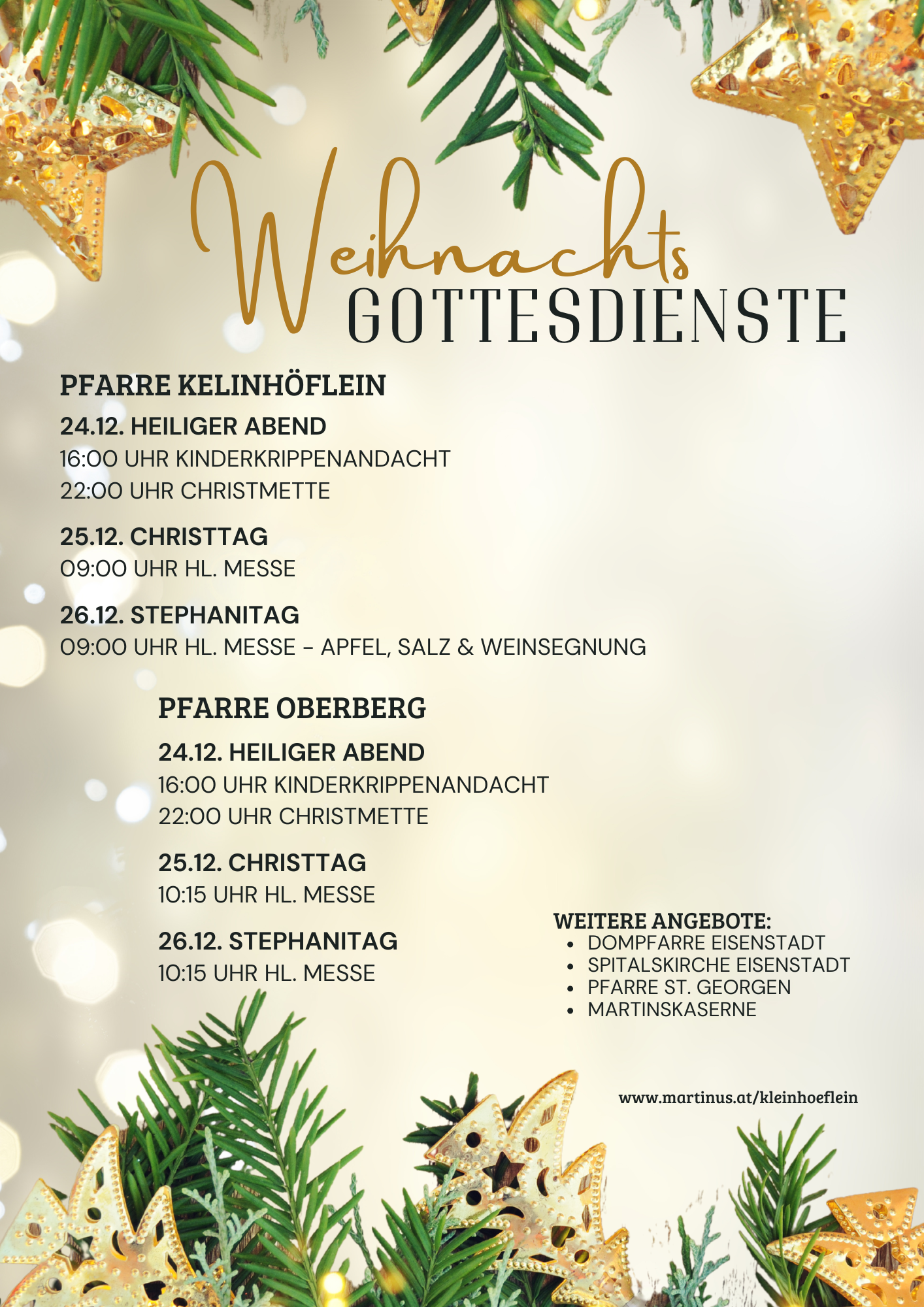Weihnachtsgottesdienste im Pfarrverband