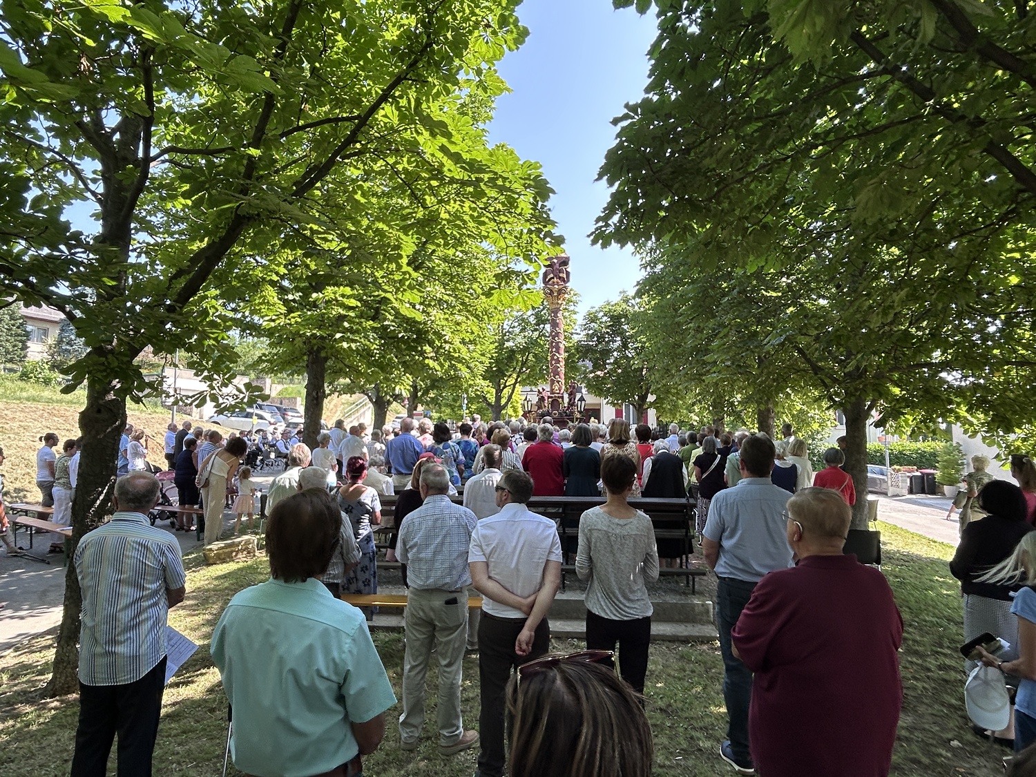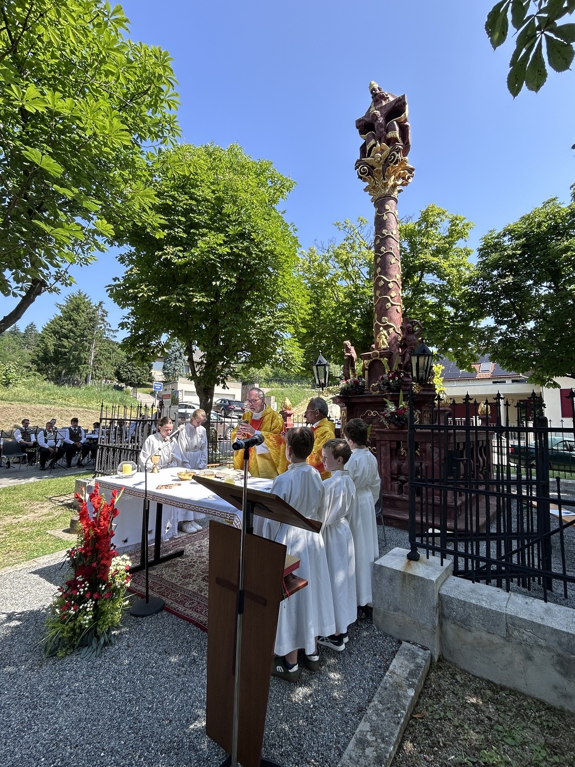 Bei strahlendem Wetter feierten wir heute im Pfarrverband eine besonders festliche hl. Messe im Freien – vor der eindrucksvollen Kulisse unserer Dreifaltigkeitssäule.