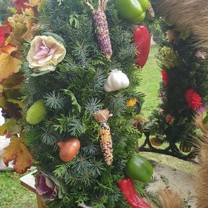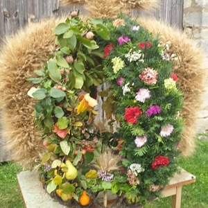 Traditionell ein besonderer Blickfang, war die große Erntedank-Krone, welche unter der Leitung von Birgit Talian mit Hilfe von Regina Lehner, Schwester Evelin, Walter Gaal, Resi Hofleitner und Regina Kaiser gefertigt wurde.