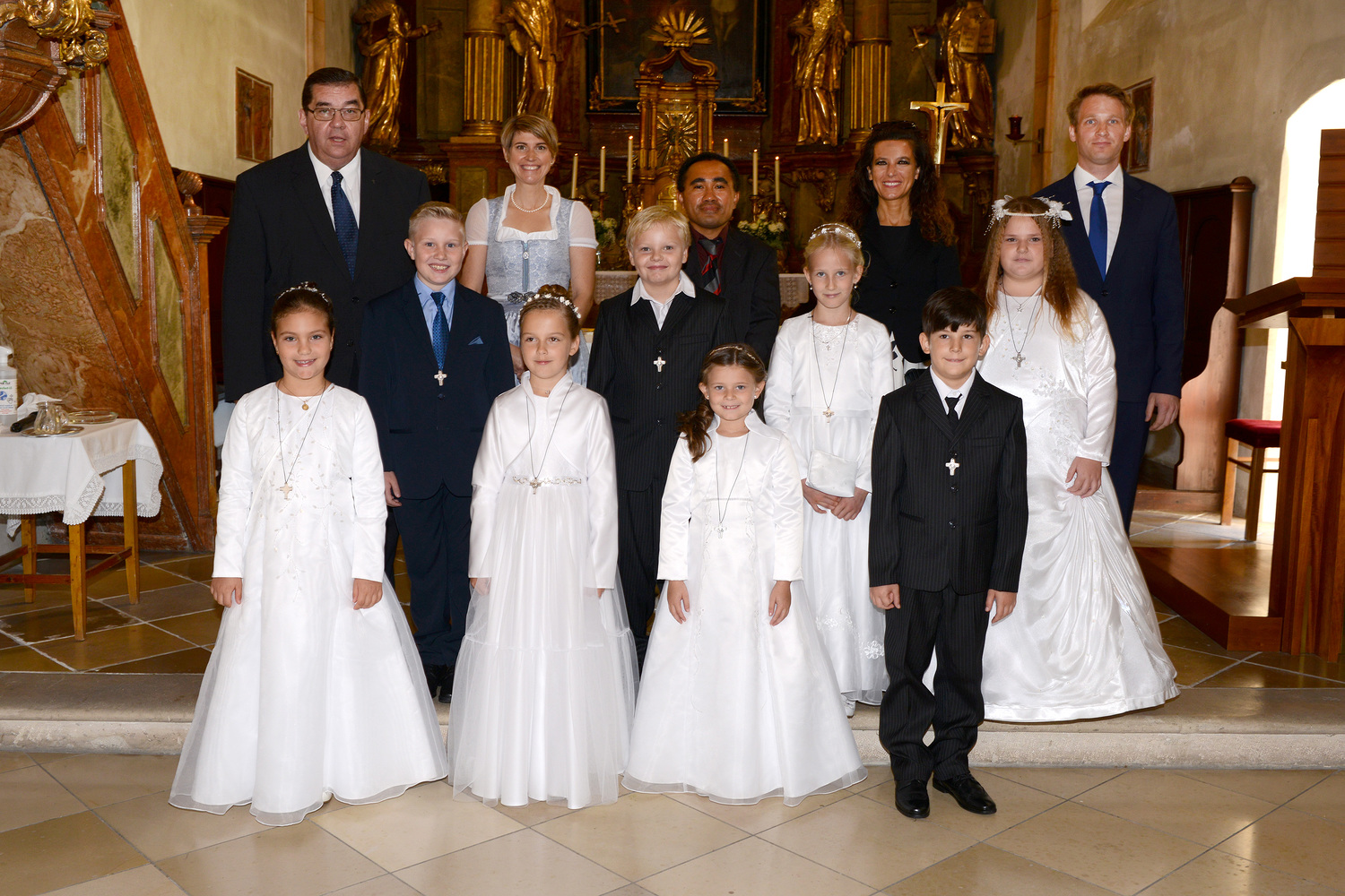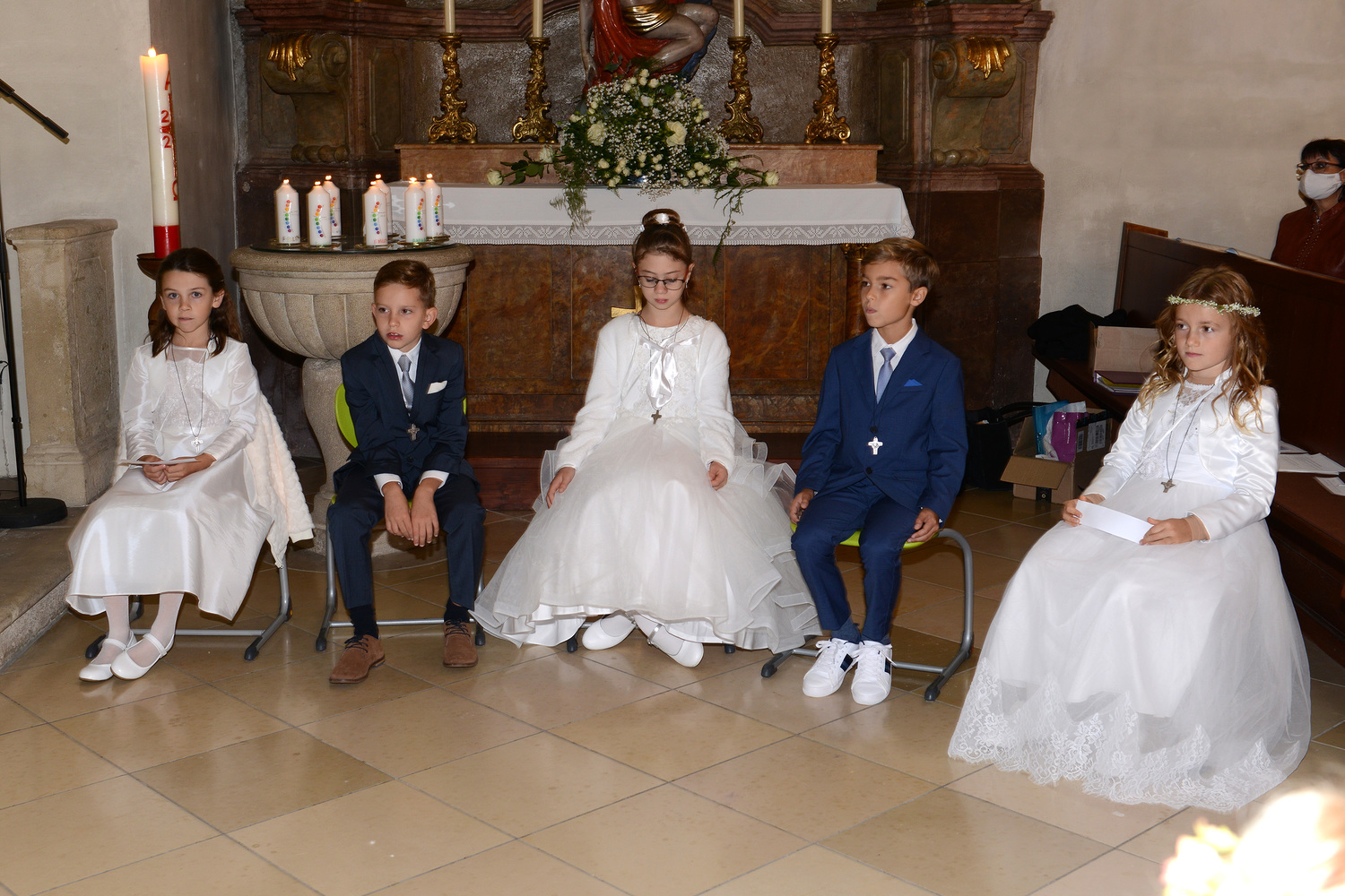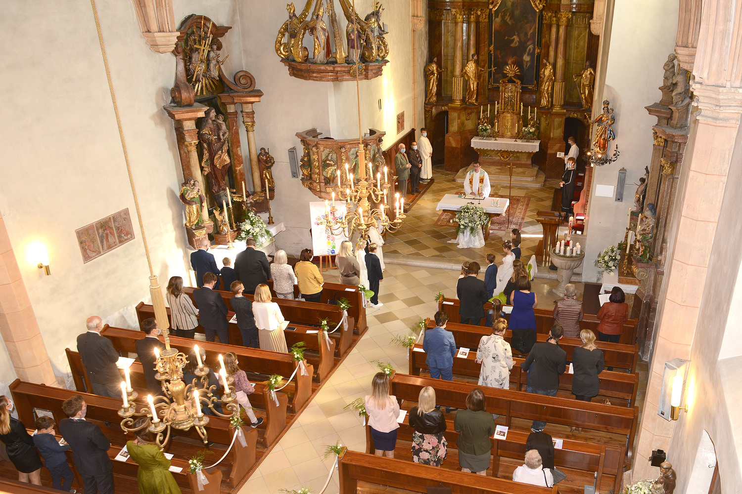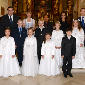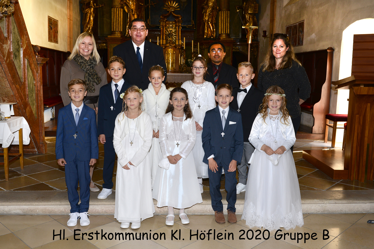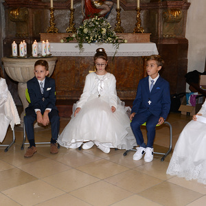 Seit Dezember 2019 haben sich 17 Kinder mit ihren Tischeltern auf das Fest der Erstkommunion vorbereitet. Sie beschäftigten sich mit dem Thema: Jesus, unser Freund. Meistens trafen sich die Kinder im Pfarrhof, in der Kirche und am Pfarrgarten mit ihren Tischeltern, um den Inhalt der Vorbereitung kennenzulernen bzw. zu vertiefen. Nach intensiven Vorbereitungen feierten sie am Sonntag, dem 4. Oktober 2020 das Fest der ersten Heiligen Kommunion. In der Pfarrkirche begleiteten Orgel und Combo mit einigen vorgesehenen Lieder die Messe musikalisch. Die Kinder durften einige Einleitungstexte so wie die Fürbitten vorsprechen und vorbeten. Bei der Begrüßung von Ratsvikarin und der Einleitung des Pfarrers wurde die Bedeutung der Freundschaft kurz gedeutet. „Es ist gut und schön, eine Freundin und einen Freund zu haben“, so Pfarrer Willi. So wie in der menschlichen Beziehung wird die Pflege der Freundschaft mit Gott auf weiteres benötigt.