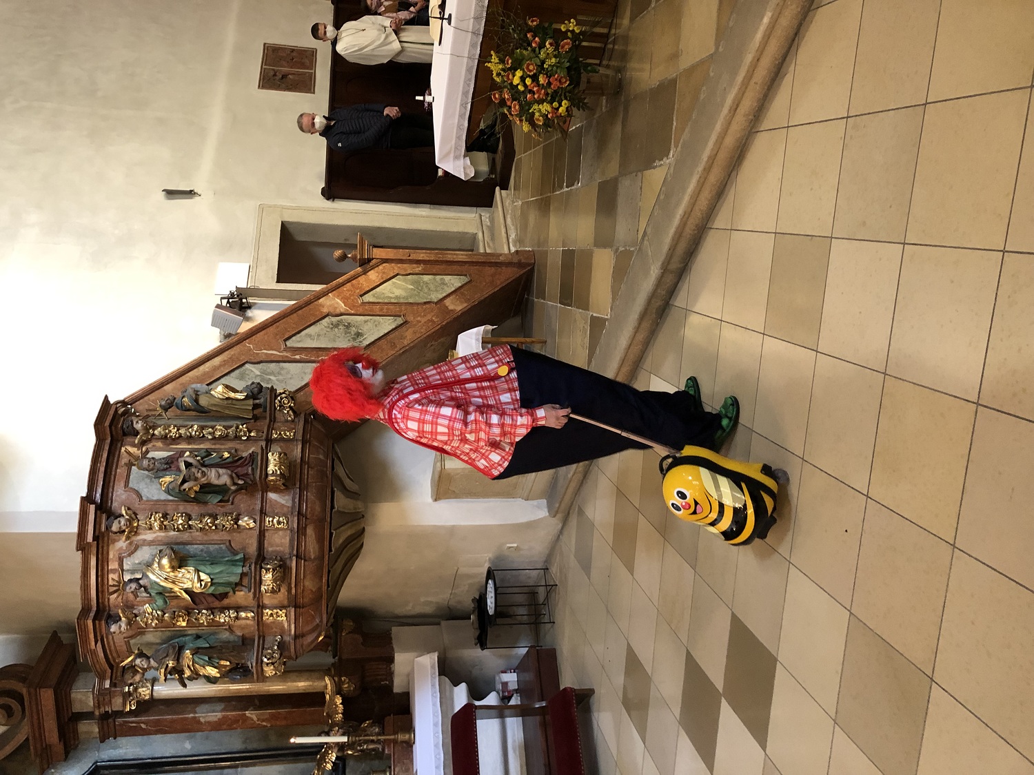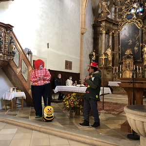 Pfarrer Alexander Wessely begrüßte alle Clowns, Cowgirl & Cowboys, alle Tiger und Indianer, alle Harry Potter & Hermines, alle Prinzessinnen, Polizisten und Pippi Langstrumpfs ...