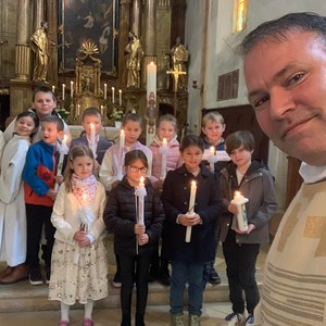 Am Weißen Sonntag bzw. seit Papst Johannes Paul II auch Barmherzigkeitssonntag genannt, fand die Tauferneuerung unserer Erstkommunionskinder statt. Mit großer Begeisterung gestalteten sie den Gottesdienst gemeinsam mit den Tischeltern und Pastoralassistent Fred mit. Pfarrer Alexander erzählte von der heiligen Faustyna Kowalska, nach welcher der Barmherzigkeitssonntag genannt wurde. Sie beschrieb nach einer Erscheinung den Barmherzigen Jesu mit weißem Gewand und 2 großen Strahlen, welche aus seinem geöffneten Herzen kamen und mit der Unterschrift: Jesu, ich vertraue auf dich.