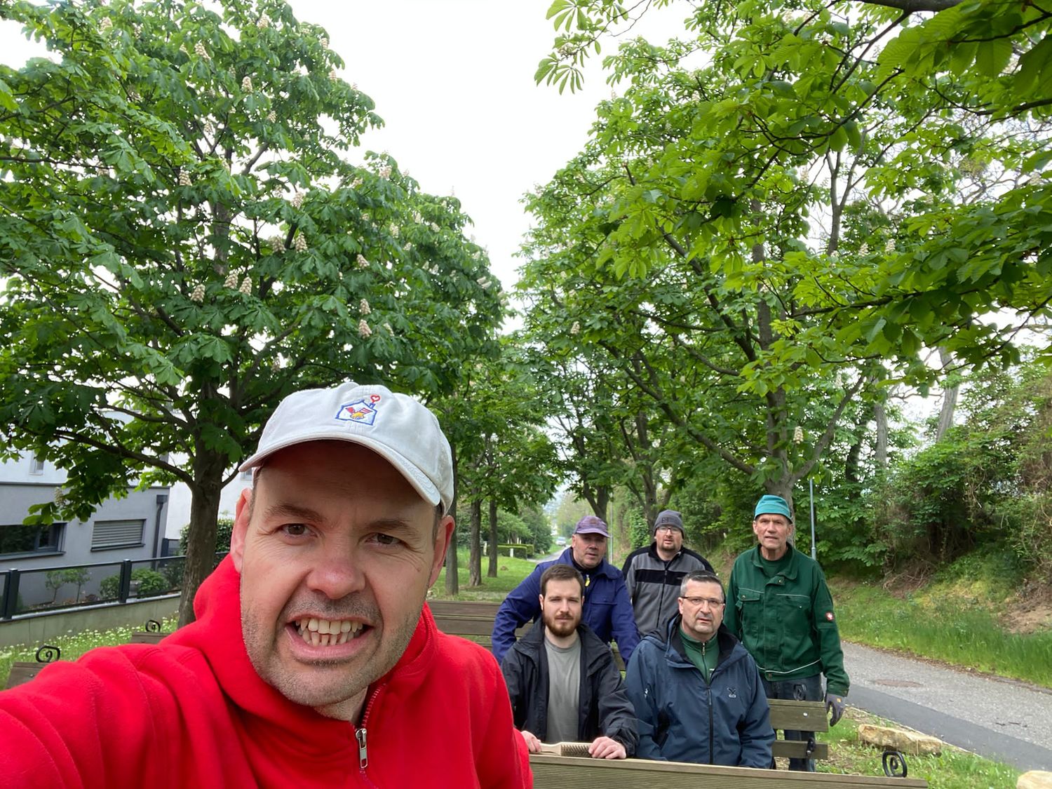 Im Zuge der Sanierung werden seitens der Pfarre auch die Sitzbänke in Eigenregie renoviert. Am Samstag, 7.5.2022 trafen sich einige Pfarrmitglieder um die verwitterten Sitzgelegenheiten rund um die Säule wieder auf Vordermann zu bringen. Diese werden abgeschliffen, grundiert und neu eingelassen, damit auch sie bei der Segnung am 12. Juni 2022 wieder in neuem Glanz erstrahlen und zum Verweilen einladen.