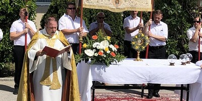 Heute waren wieder die Häuser, Straßen und Plätze im Dorf in der Stadt geschmückt. Nach der Hl. Messe in der Pfarrkirche wurde die Prozession zu den 4 Altären im Dorf von der Winzerkapelle...