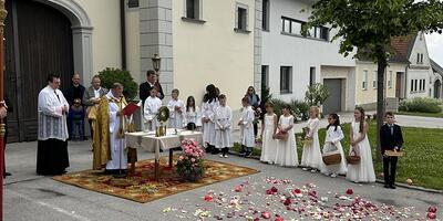 Bei herrlichem Wetter feierten heute 9 Kinder ihre hl. Erstkommunion. Mit dem Thema „Mit Jesus unterwegs“ haben sie nicht nur in der Vorbereitungszeit Spuren hinterlassen. Jesus begleitet sie und...