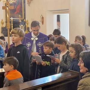 Petak, 24.3.2023., u 15h, u uri Jezuševe smrti, su dica išli i molili križni put u farskoj crikvi u Vulkaprodrštofu. Ljetošnji prvopričesniki su kratko uvodili u svaku štaciju.