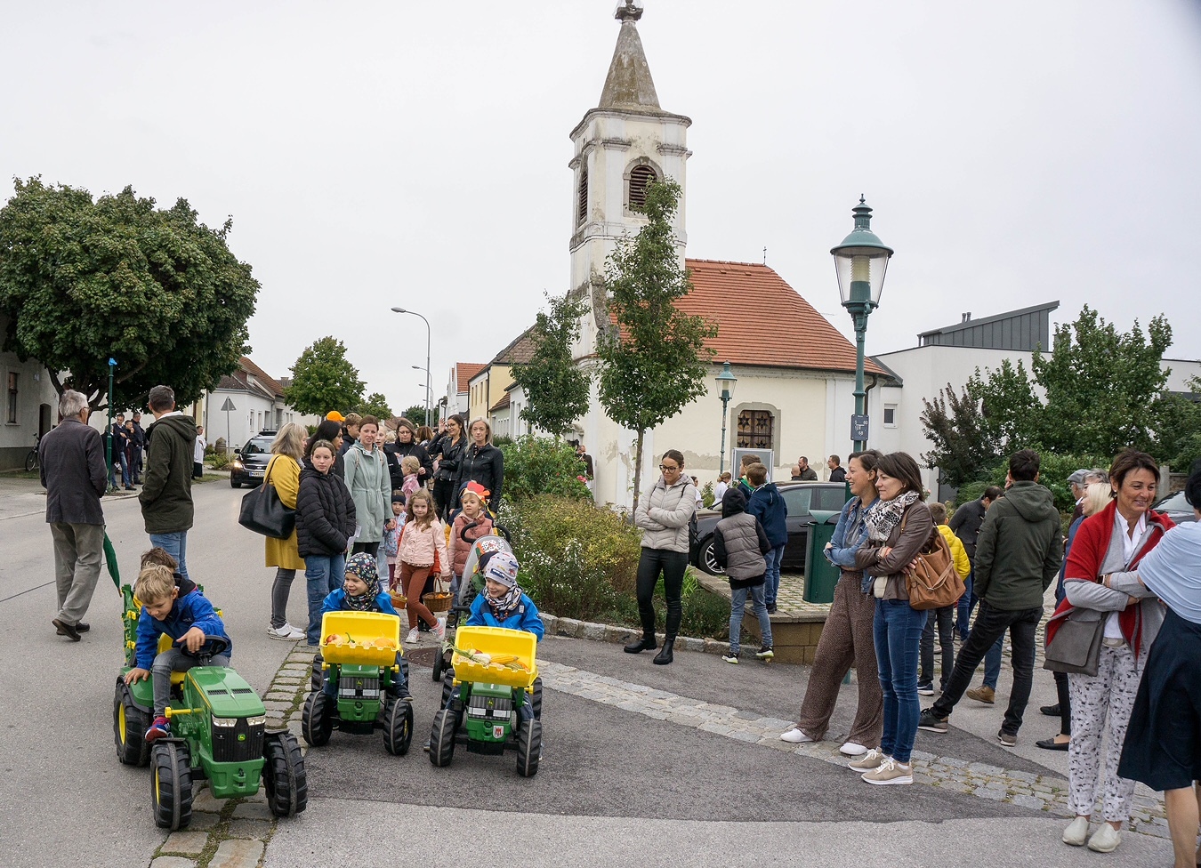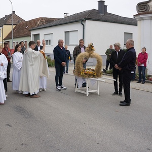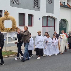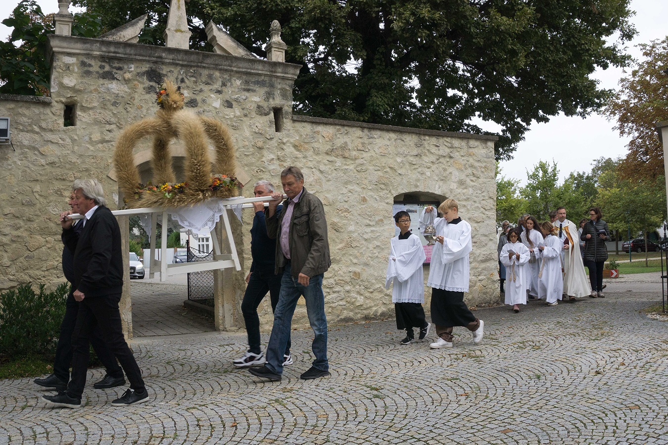 Die Pfarre feierte am Sonntag, 24. September 2023, das Erntedankfest. Um 9.45 Uhr wurde die Erntekrone bei der Marienkapelle feierlich gesegnet, dann ging es in einer Prozession zur Kirche. Anschließend feierte Pfarrmoderator Mag. Stefan Jahns die hl. Messe.