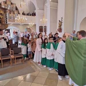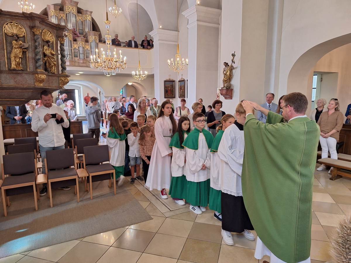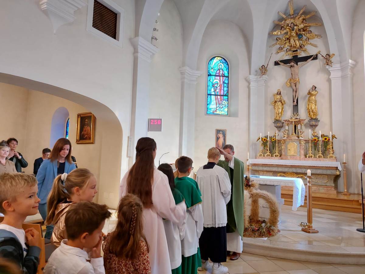 Nach der hl. Messe am Sonntag, 1.10.2023, segnete Pfarrmoderator Mag. Stefan Jahns die Kinder. Mit der Kindersegnung sollen die Jüngsten unter den Schutz Gottes in unserer Pfarre gestellt werden, die Schutzengel sollen die Kinder begleiten.
