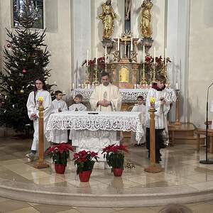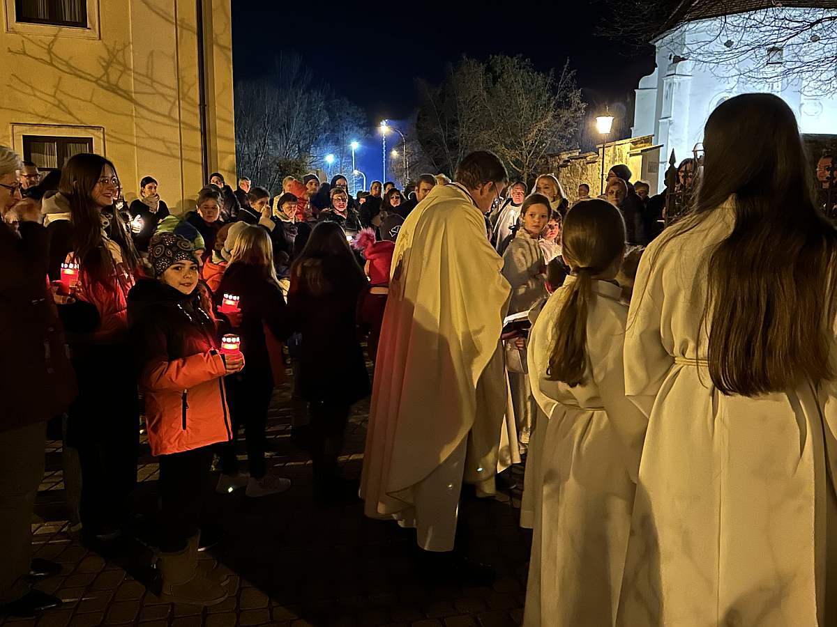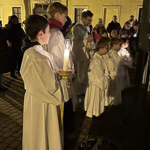 Um 18.00 Uhr erfolgte die Segnung der mitgebrachten Kerzen bei der Dreifaltigkeitssäule, danach die Prozession in die Kirche und anschließend die hl. Messe mit den Erstkommunionkindern und den Firmkandidaten. Musikalisch umrahmt wurde die Messe vom Kirchenchor. Am Ende der Messe wurde der Blasiussegen mit zwei vor dem Hals gekreuzten Kerzen erteilt.