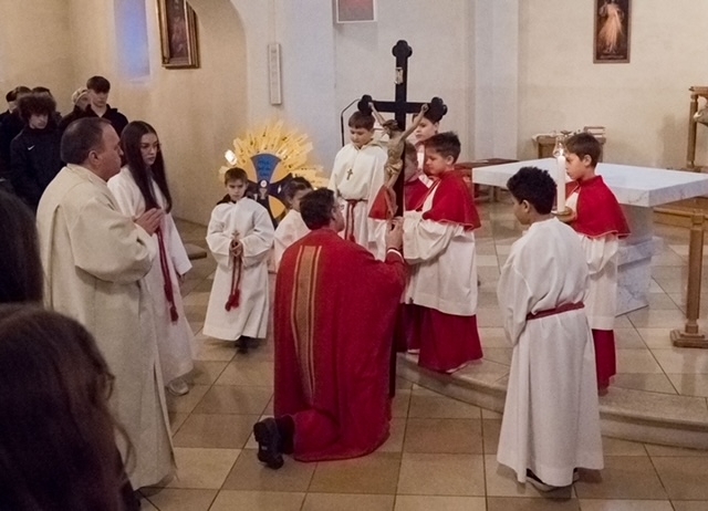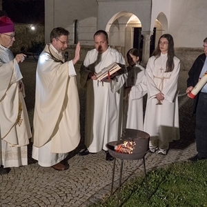 Bilder vom Palmsonntag mit der Palmweihe, Gründonnerstag die hl. Messe vom Letzten Abendmahl und Fußwaschung, am Karfreitag die Feier vom Leiden und Sterben Christi, am Karsamstag gemeinsame Andacht beim Heiligen Grab und Speisensegnung, die Osternachtsfeier am Karsamstag mit Feuerweihe und Entzünden der Osterkerze sowie am Ostersonntag das Osterhochamt.