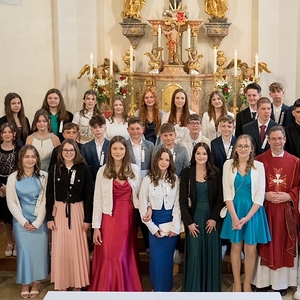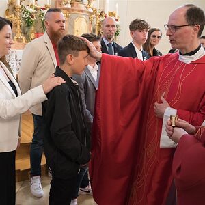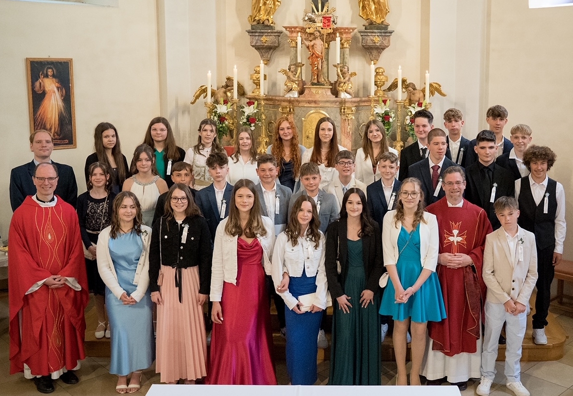 Die Spendung der Firmung erfolgte am Pfingstsonntag, 19.5.2024 im Rahmen der Hl. Messe von P. Stefan Vukits an 29 Firmlinge.