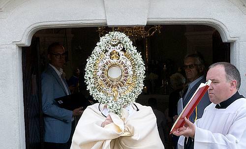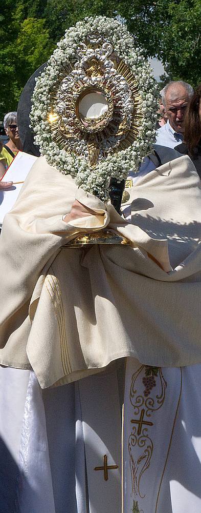 Am zweiten Donnerstag nach Pfingsten begeht die katholische Kirche das Fronleichnamsfest, auch "Hochfest des Leibes und Blutes Christi" genannt. Im Mittelpunkt dieses Festes steht die Eucharistie, d.h. die Gegenwart Jesu Christi in Brot und Wein. An Fronleichnam gedenkt die Kirche der Einsetzung dieses Sakraments durch Jesus Christus selbst.