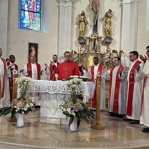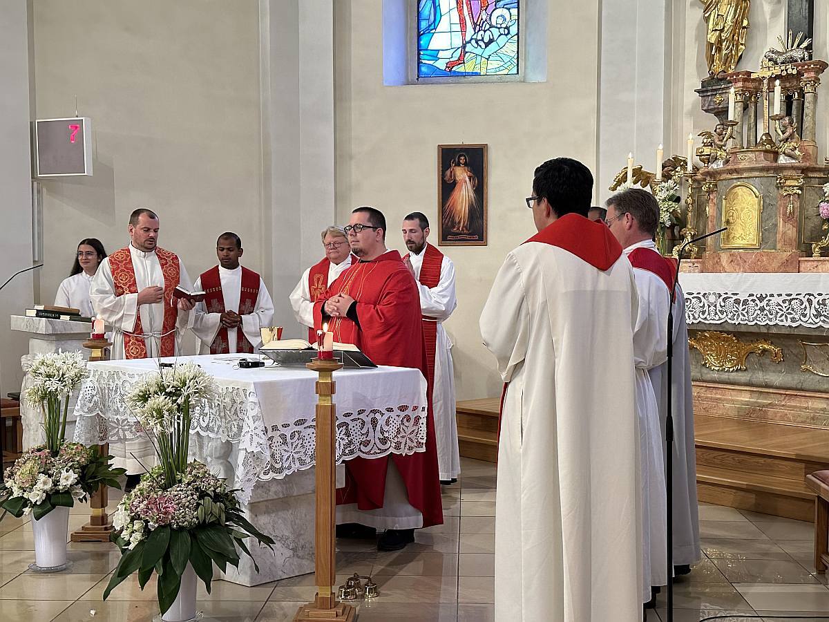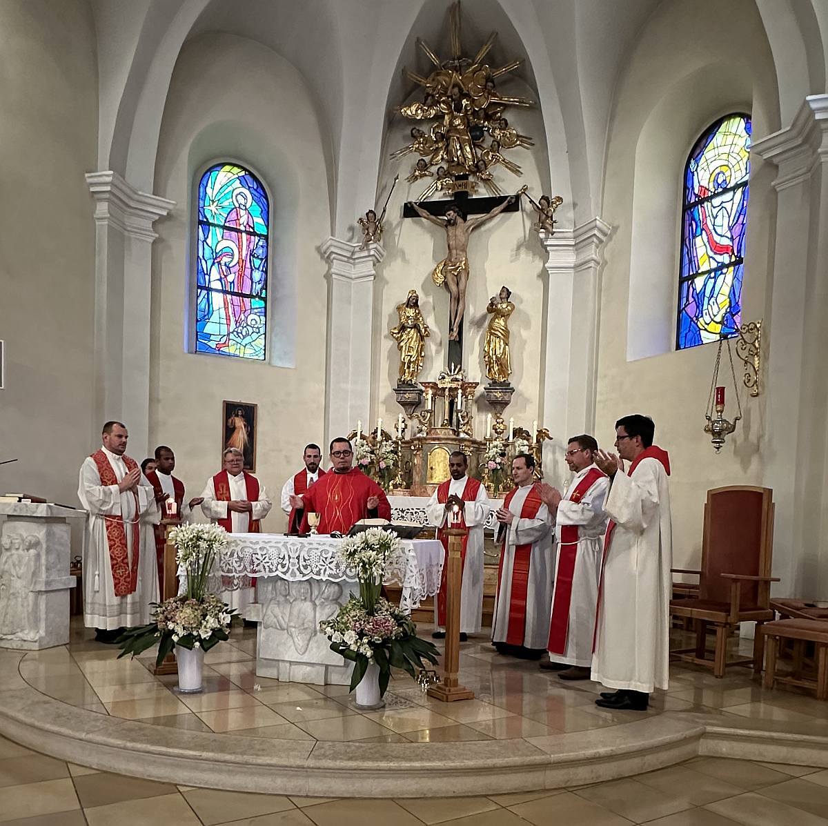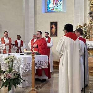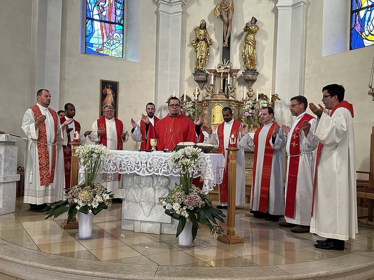 Am Montag 3.6.2024 trafen sich die Jungpriester der Diözese Eisenstadt zu einem Gedankenaustausch und anschließender Meßfeier in der Pfarre Wulkaprodersdorf. Bischof Ägidius Zsifkovics, Generalvikar Michael Wüger und P. Lorenz Voith nahmen an diesem Treffen teil.