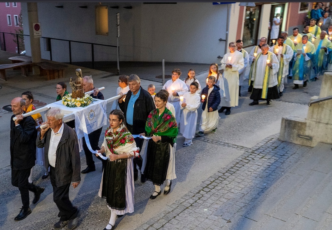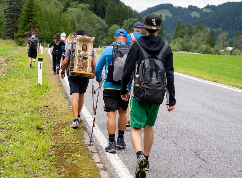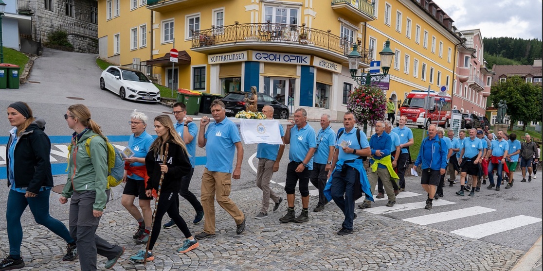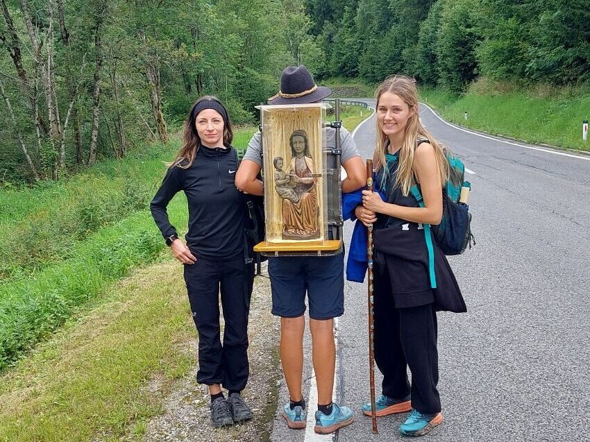 Am Donnerstag, 21. August starteten viele Fusswallfahrer den Weg nach Mariazell, am Rücken die Statue, die abwechselnd von den Fußwallfahrern getragen wurde.