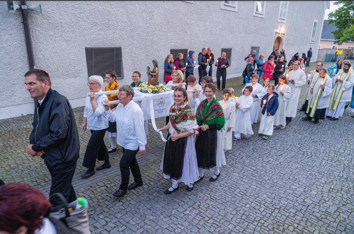 im Namen der Pfarre und des Pfarrgemeinderates Wulkaprodersdorf möchte ich von Herzen Danke sagen, dass wir das Bild der Wandermuttergottes aus Mariazell für ein Jahr in unserer Pfarre beherbergen durften. Schweren Herzens aber voller Dankbarkeit reichen wir die Muttergottes von Mariazell an die ungarische PfarreHrvatski Židan weiter. Auch wenn uns der Abschied schwer fällt, sind wir sicher, dass die Wandermuttergottes auch den Gläubigen in Hrvatski Židan viel Liebe und Fürsorge geben wird.