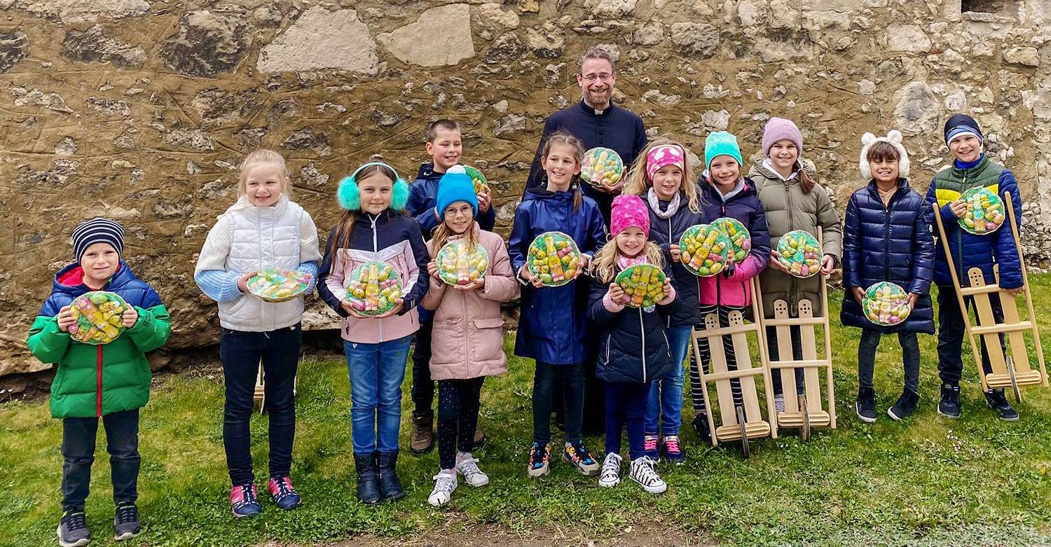 Am Karfreitag und Karsamstag machten sich in der Mittagszeit zwei Gruppen, insgesamt 12 Kinder mit ihren Begleitern auf den Weg, um in der Pfarre darauf aufmerksam zu machen, dass die Glocken schweigen und dadurch an die Gebetszeit mittags zu erinnern.