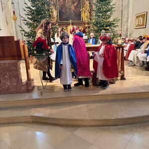 Am Dreikönigstag gestalteten die Sternsingerinnen und Sternsinger den Gottesdienst mit. Herr Pfarrer Giefing bedankte sich in der Predigt bei den Königinnen und Königen und deren Begleitpersonen für ihren Beitrag: sie haben ihre Zeit geschenkt, sie haben Gemeinschaft erlebt und sich für Menschen engagiert, denen es nicht so gut geht wie uns. Danke für das tolle Spendenergebnis von € 6.142,65