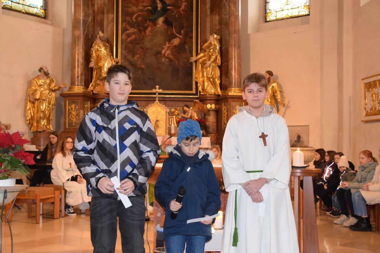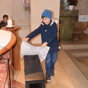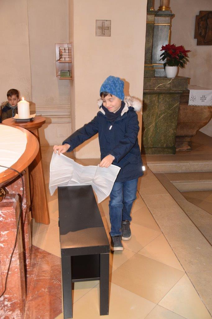 Die „Hochzeit von Kana“ war das Thema des Familiengottesdienstes am 19.1.25. Gemeinsam wurde mit Hilfe einiger Kinder ein festlicher Tisch gedeckt. Bei der Hochzeit von Kana verwandelte Jesus Wasser in Wein. Er half mit, dass dieses Fest nicht so schnell zu Ende ging. Jesus verteilte Freude unter den Menschen und half mit guten Taten. Auch im Gottesdienst verwandelten wir gemeinsam Wasser in Wein. Der Wein steht symbolisch für die Freude und die Liebe, die Jesus uns schenkt.