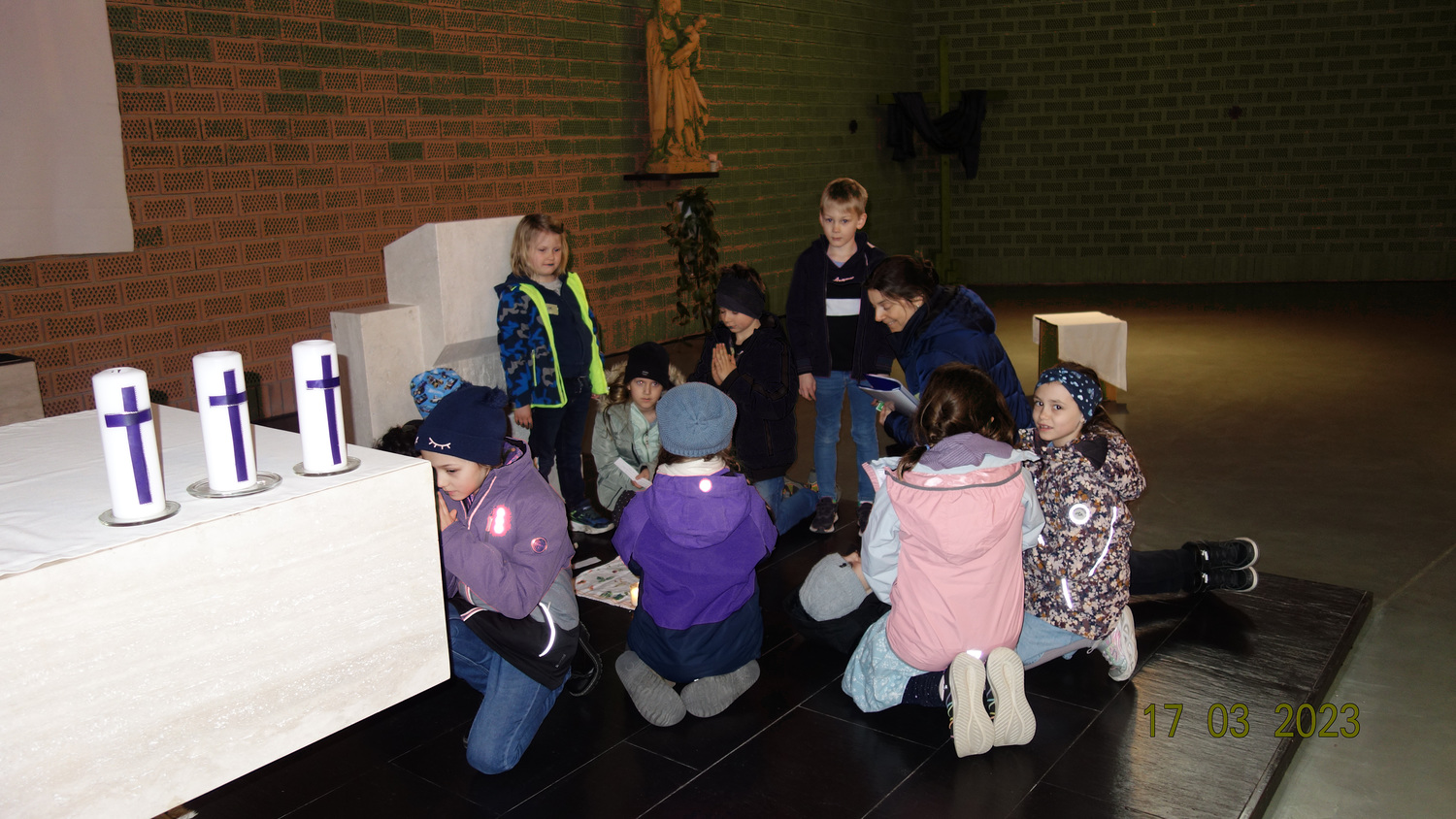 Pfarrgemeinderätin Nadja Hutter hatte einen interessanten Zugang zum Thema vorbereitet. Kindgerechter Aufbau und die Darstellung von Szenen unter Verwendung von Requsiten, sowie ausgesuchte Texte, die von Kindern vorgetragen wurden, stellten den Höhepunkt des Kinderkreuzweges dar. Verständlich daher, die engagierte Mitarbeit der Kinder bei der Themenerarbeitung, am Kreuzweg und beim Gebet, ebenfalls auch das Interesse der Eltern, die die Kinder begleitet hatten.
