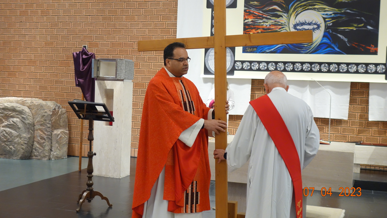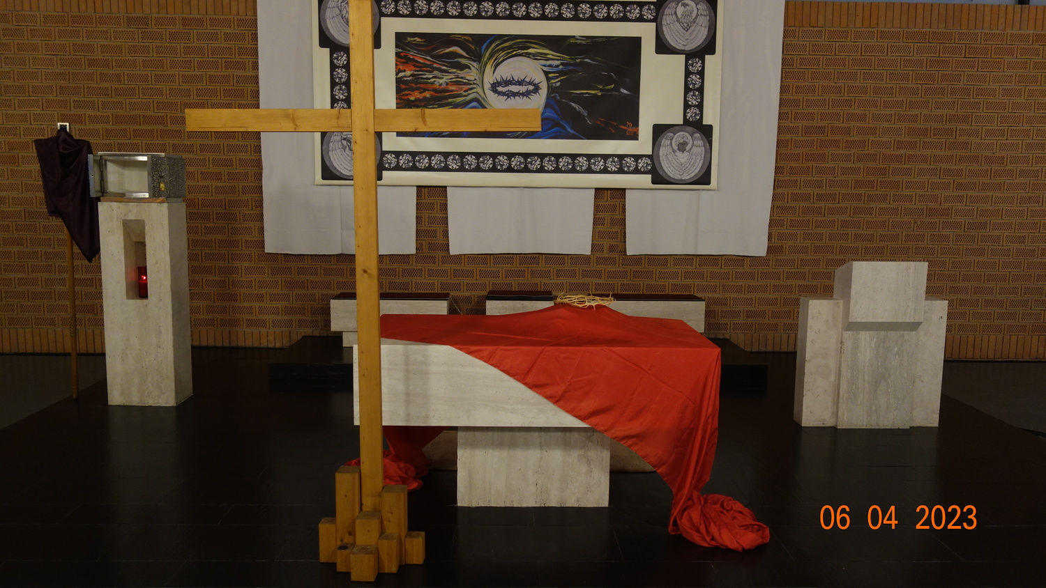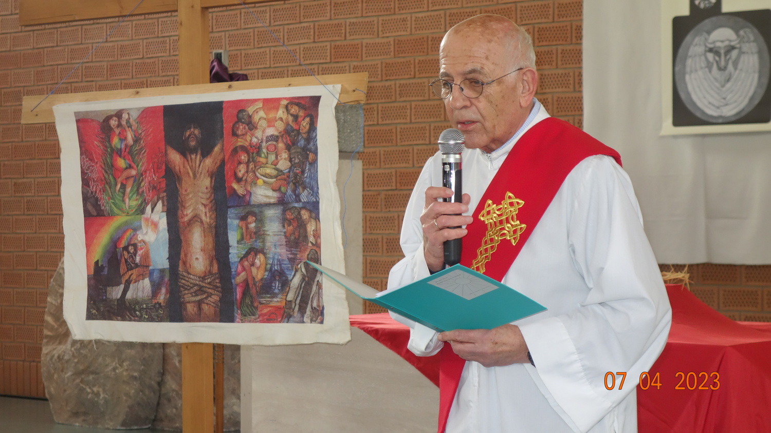 Um 1500 Uhr am Karfreitag, dem 7. April 2023 fand in der Pfarrkirche ein Kreuzweg unter Leitung von Diakon Dr. Peter Zotti statt. Dabei präsentierte Dr. Peter Zotti auch das Misereor Hungertuch. Dann wurden die Gläubigen durch die 14 allgemein bekannten Stationen des Kreuzweges geführt.