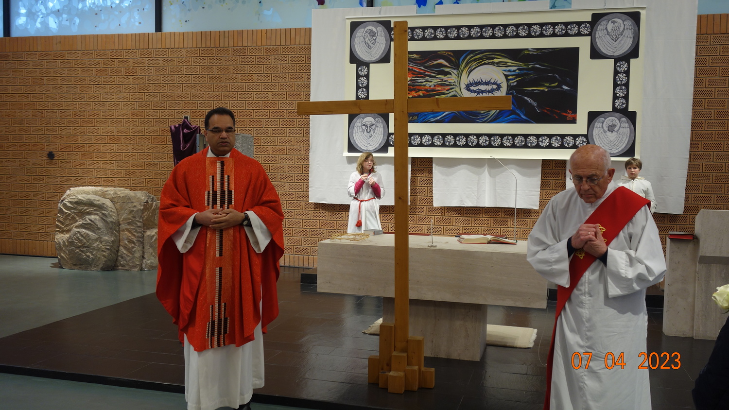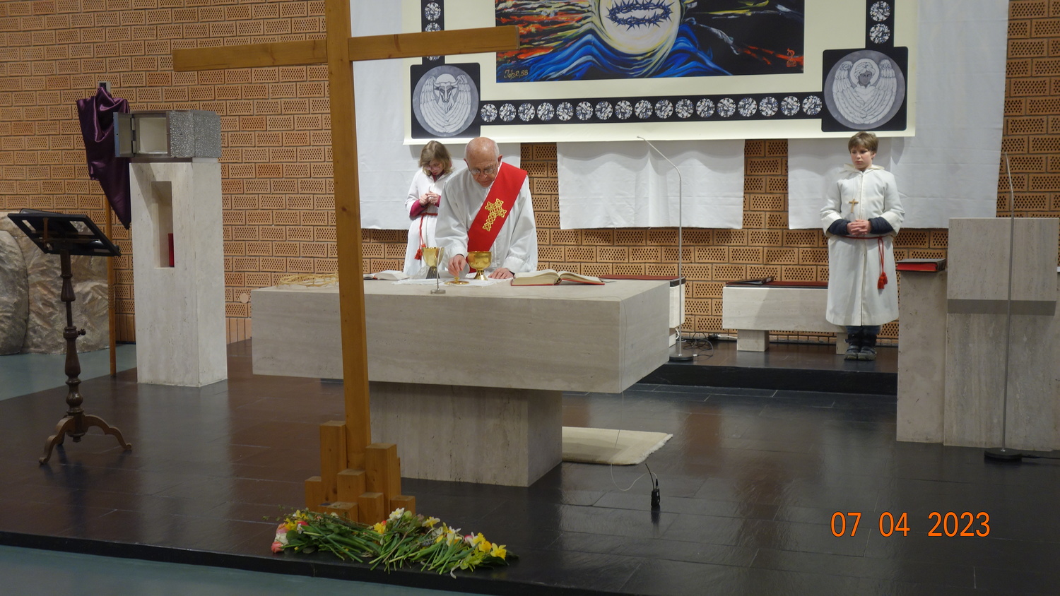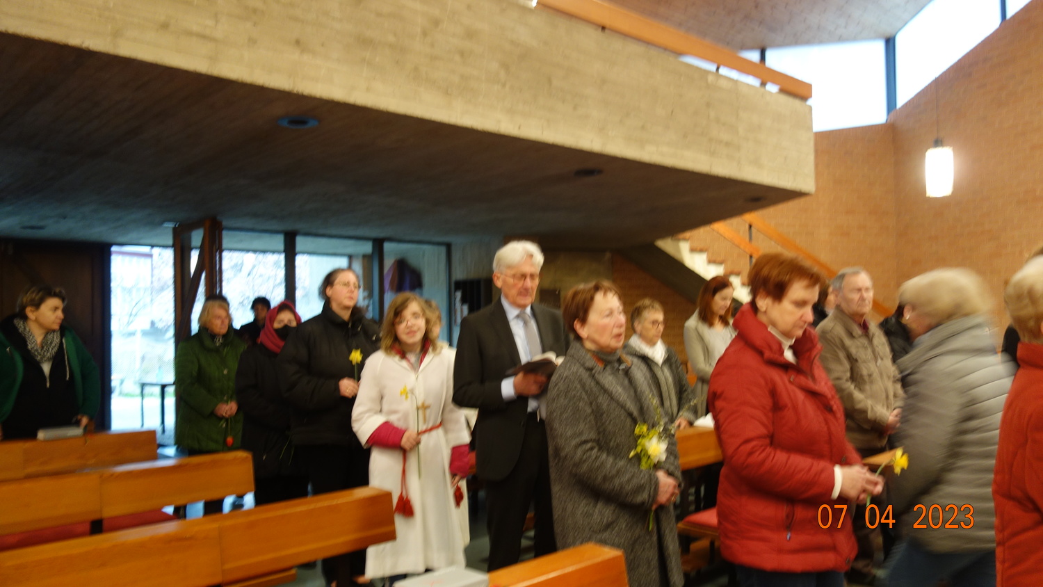 Um 1500 Uhr am Karfreitag, dem 7. April 2023 fand in der Pfarrkirche ein Kreuzweg unter Leitung von Diakon Dr. Peter Zotti statt. Dabei präsentierte Dr. Peter Zotti auch das Misereor Hungertuch. Dann wurden die Gläubigen durch die 14 allgemein bekannten Stationen des Kreuzweges geführt.