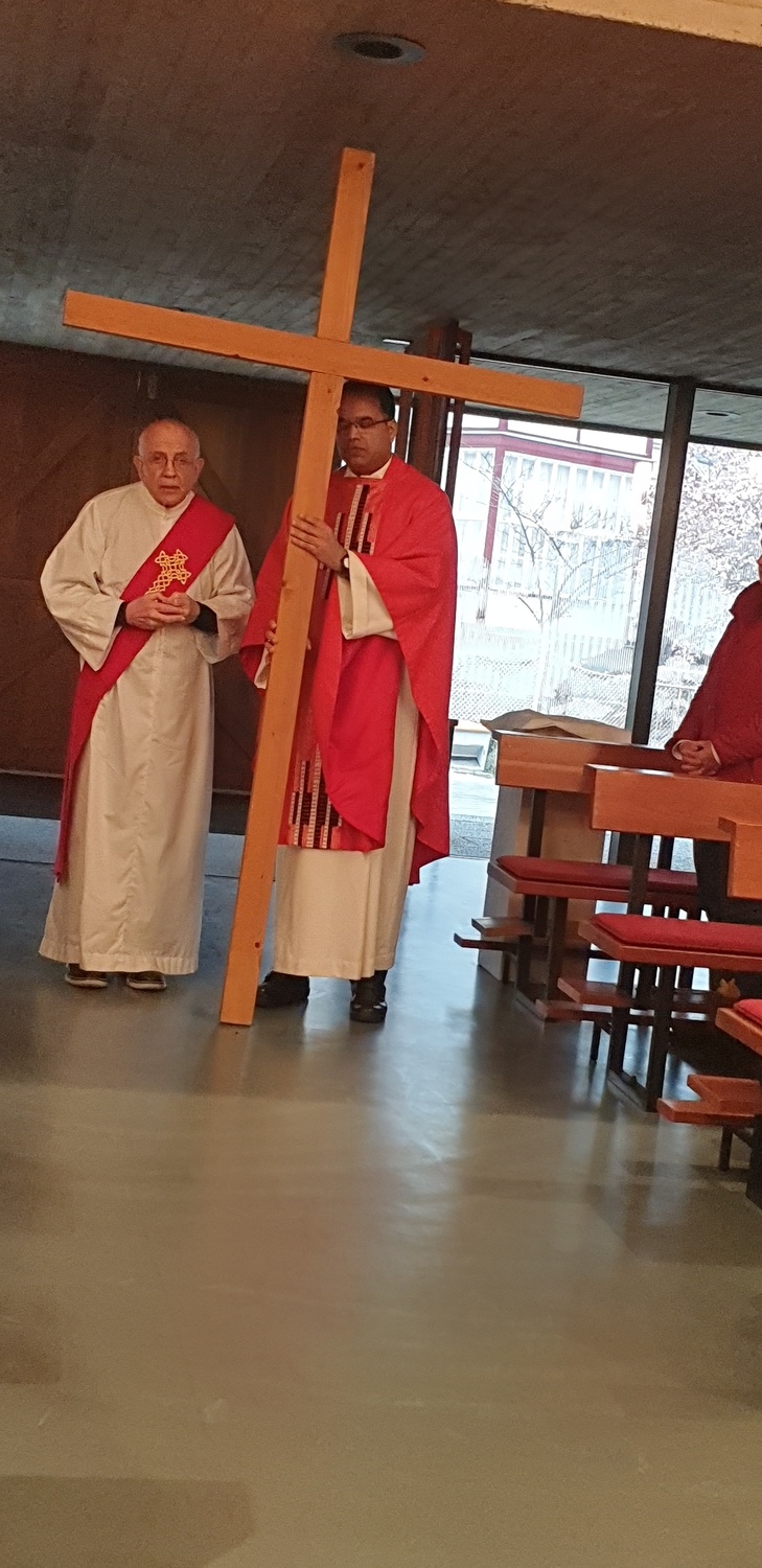 Um 1800 Uhr wurde dann in der "Passion" des Leidens unseres Herrn Jesus Christis nach Johannes gedacht. Die Texte lasen: Pater Kuruvila die Texte von Jesus, Anna Puntigam die sonstigen Texte und Hermann Dittrich trug die Texte, die dem Evangelisten zugeordnet werden vor.