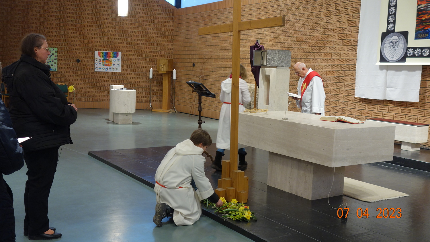Am 6. April 2023 um 1800 Uhr wurde die Hl. Messe zum letzten Abendmahl gefeiert. Im Anschluss an die Aussetzung des Allerheiligsten, versammelten sich die Gläubigen zur Ölbergstunde.