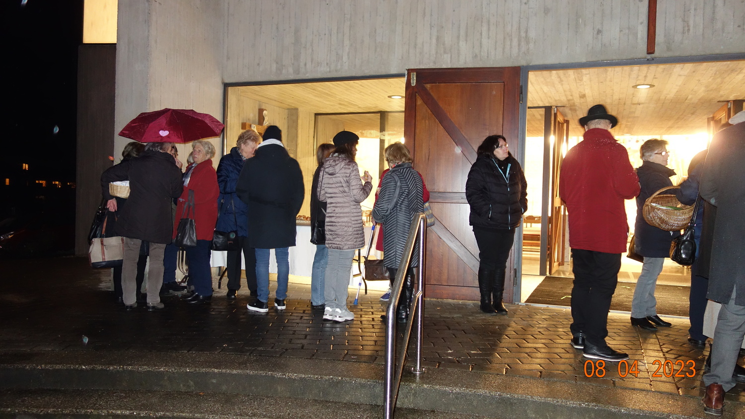 Das wünschten sich dann auch die Gläubigen gegenseitig auf der Agape, zu der der Pfarrgemeinderat geladen hatte. Es gab unter anderem Wein, Brot, Osterstriezel und es wurden Ostereier verteilt. Das verbesserungsfähige Wetter, es regnete nämlich eher stark, tat der guten Stimmung die während der Agape unter den Gläubigen herrschte, keinen Abbruch.