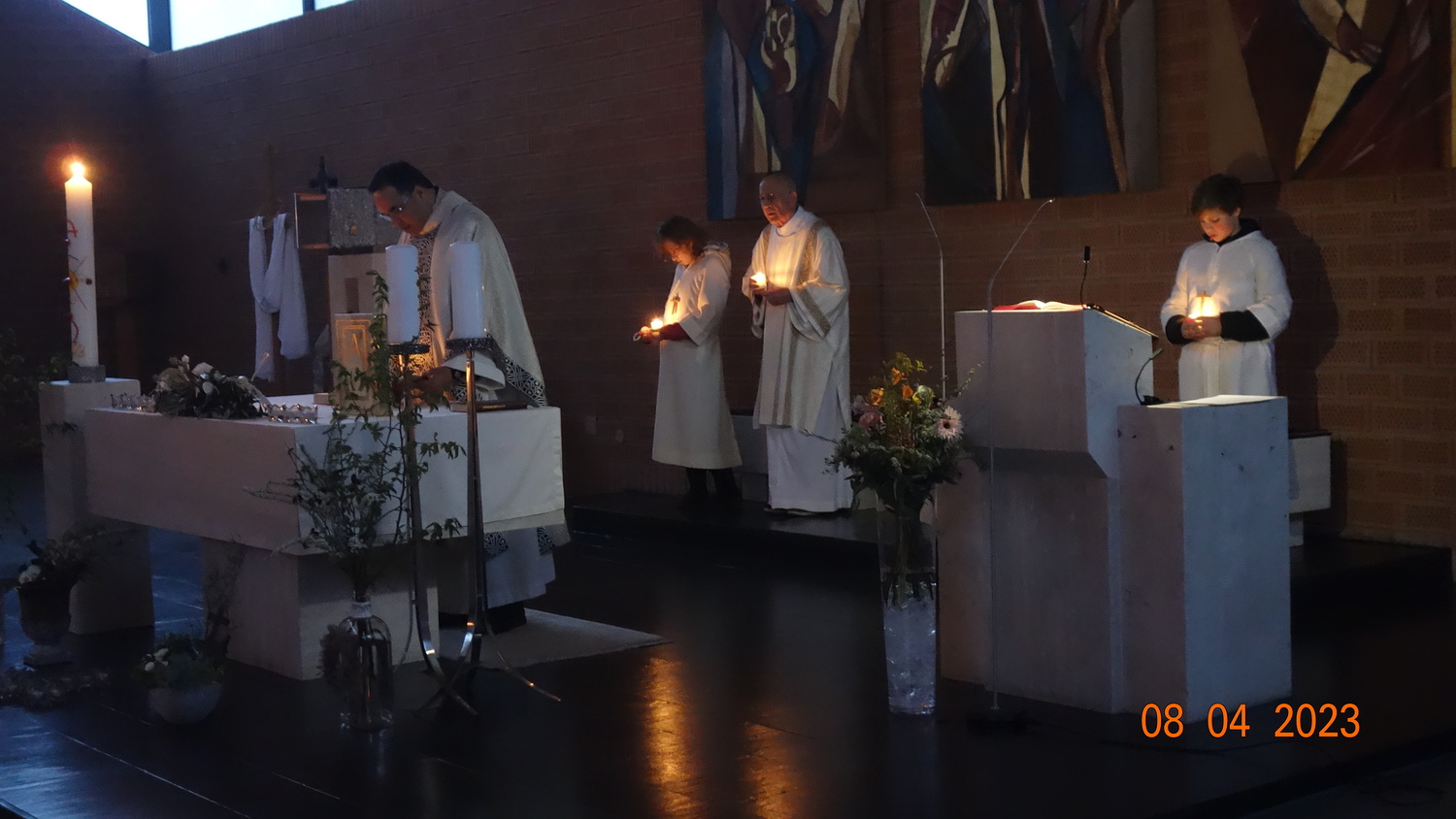 Die Messfeier zur Osternacht (Osternachtsfeier), zur Auferstehung unseres Herrn Jesus Christus, ist wohl eine der schönsten Messfeiern im Jahr. "Der Stein ist weg, das Grab ist leer!", - heißt es in dem sehr bekannten Osterlied: Der Heiland ist erstanden! Die Pfarre Bad Sauerbrunn feierte die Auferstehung Christi am Karsamstag, dem 8. April 2023 um 1900 Uhr.