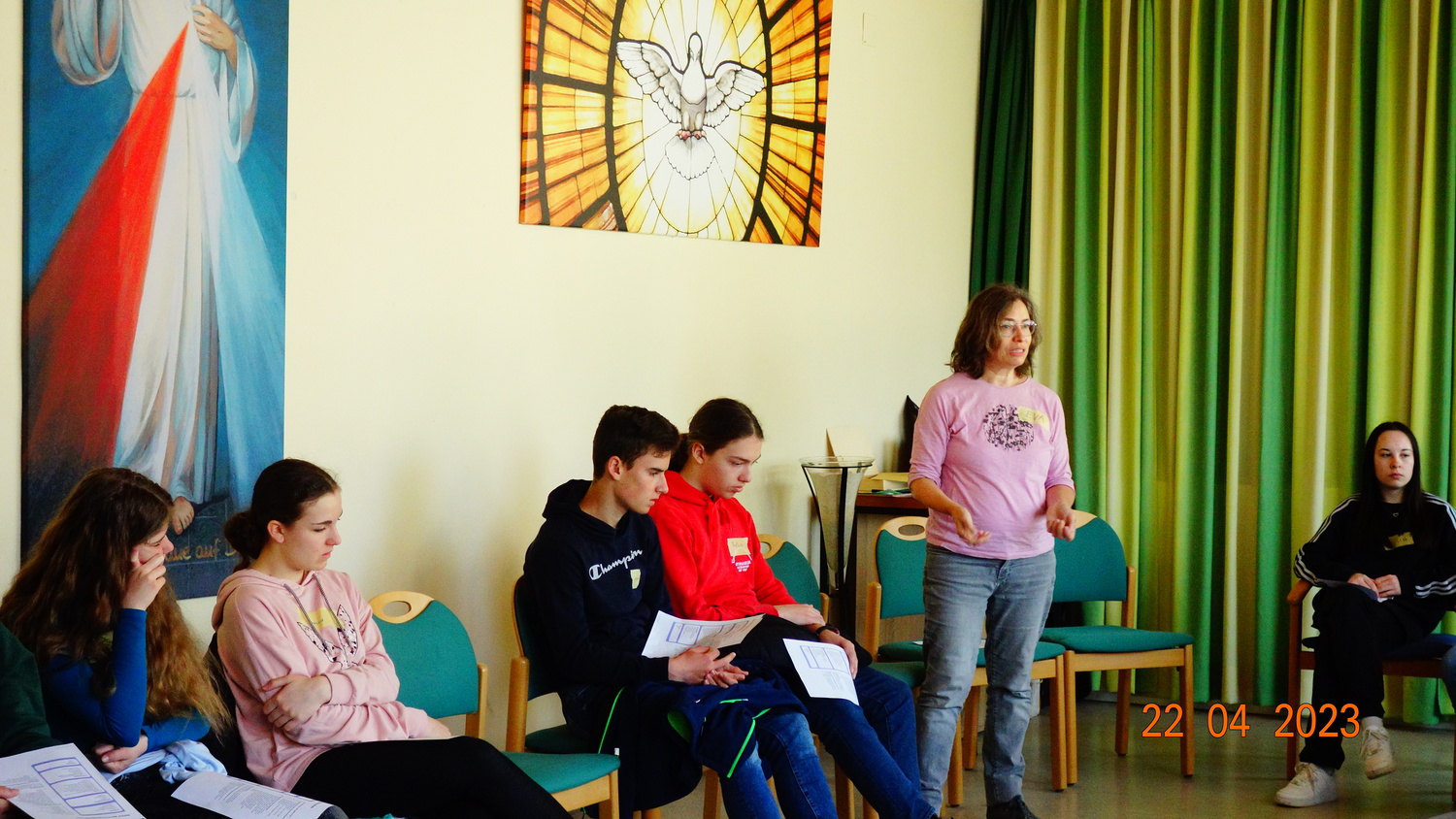 Am 22. April fand der 5. Firmvorbereitungsvormittag statt. Diesmal war - neben P. Kuruvila - auch unser Firmspender Pfarrer Roman Schwarz anwesend. Zu Beginn wurde der Ablauf der Firmung sowie die musikalische Gestaltung erörtert. Erfreulicherweise haben sich sie Firmlinge bereit erklärt, die Messe mitzugestalten.