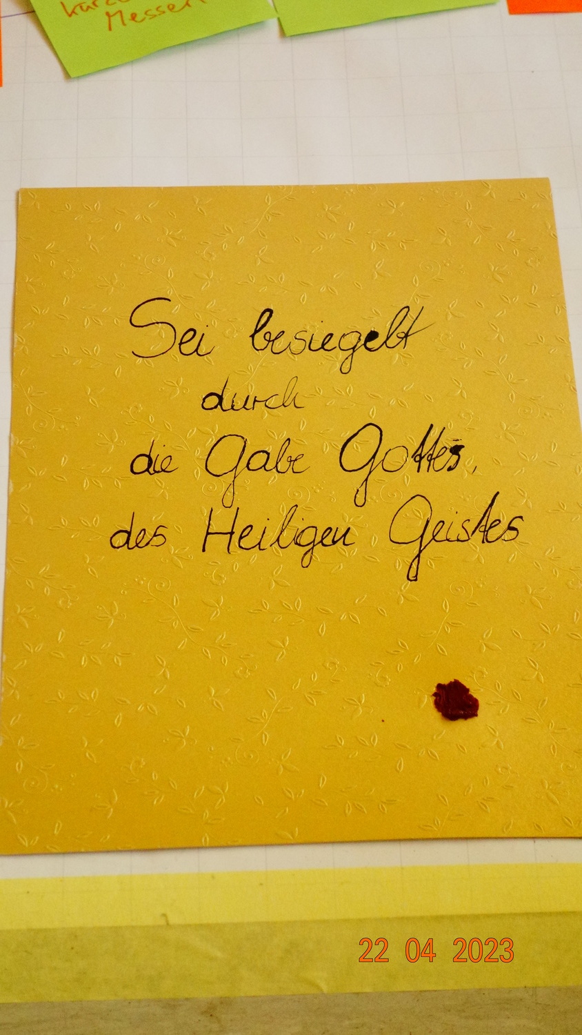 Diese Siegel wurden gemacht, da ja bei der Firmung selbst "Sei besiegelt durch die Gabe Gottes, des Heiligen Geistes" vom Firmspender gesagt wird.