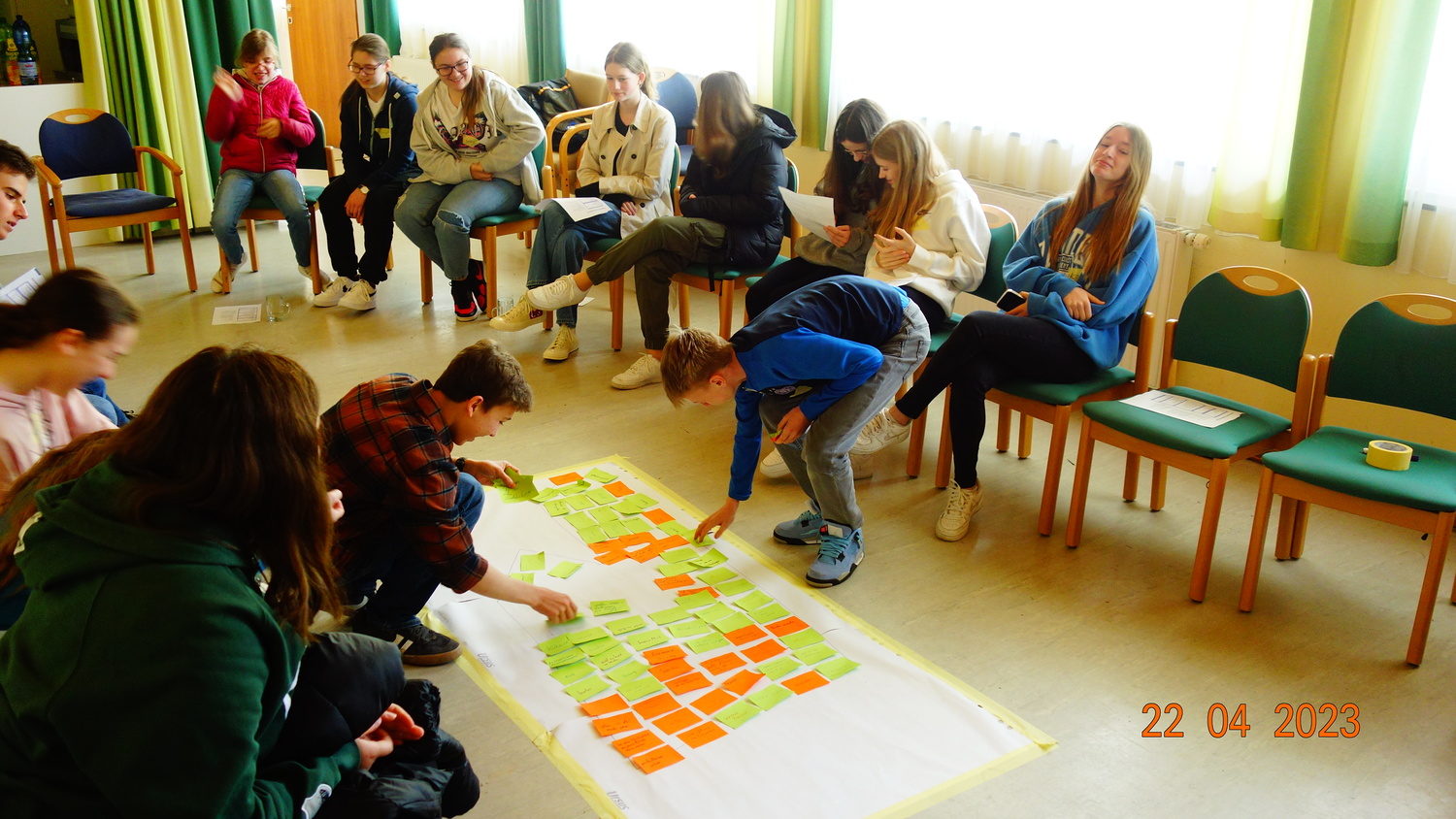 Im Anschluss wurde auf unterschiedliche Weise das Thema "Kirche" erarbeitet. Die Firmkandidat*innen arbeiteten bei diesem Thema sehr aktiv mit, wie überhaupt die Mitarbeit der Firmkandidat*innen, seit Beginn der Firmvorbereitung, sehr engagiert ist.