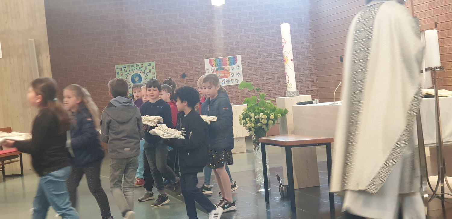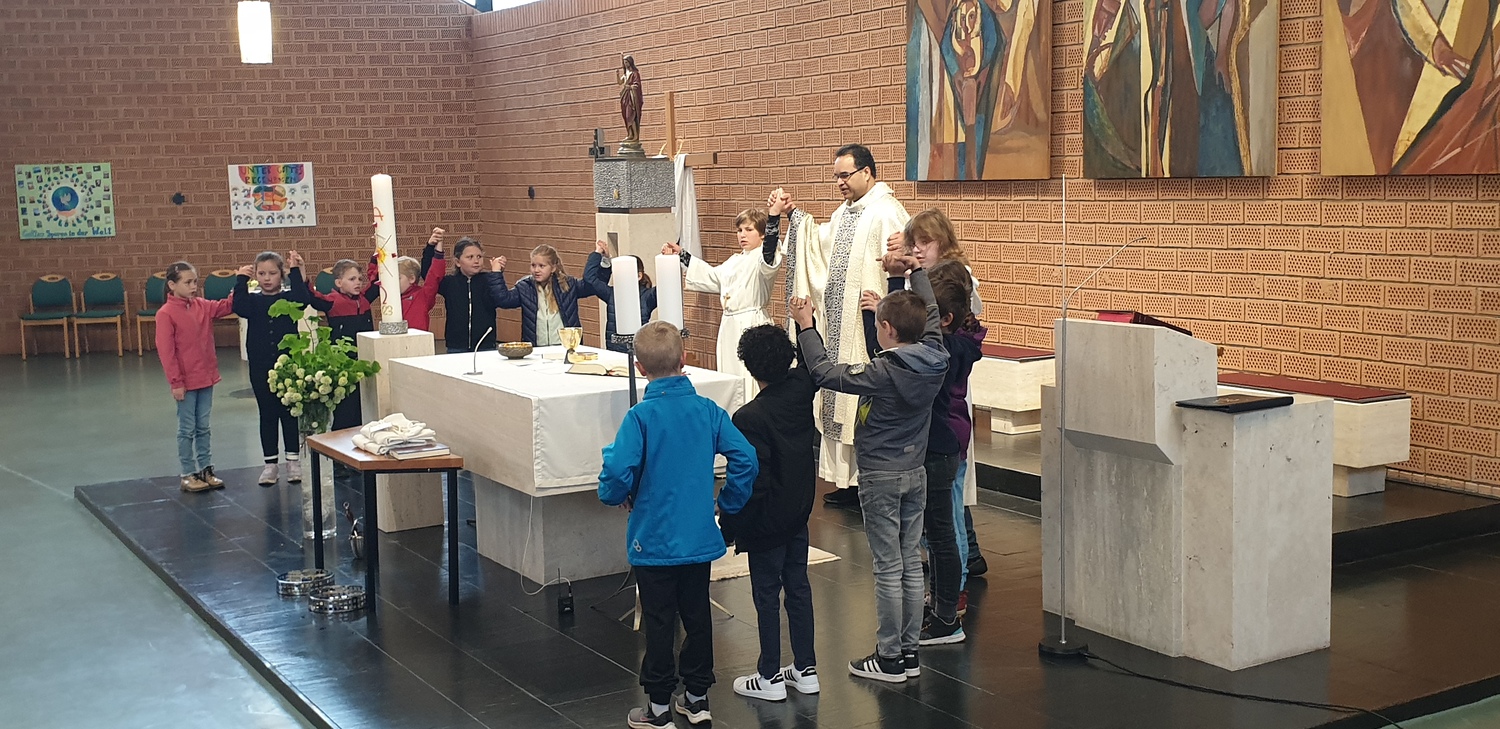 Gemeinsam mit allen Kindern sangen die Erstkommunionkinder das "Vater unser" am Altar.
