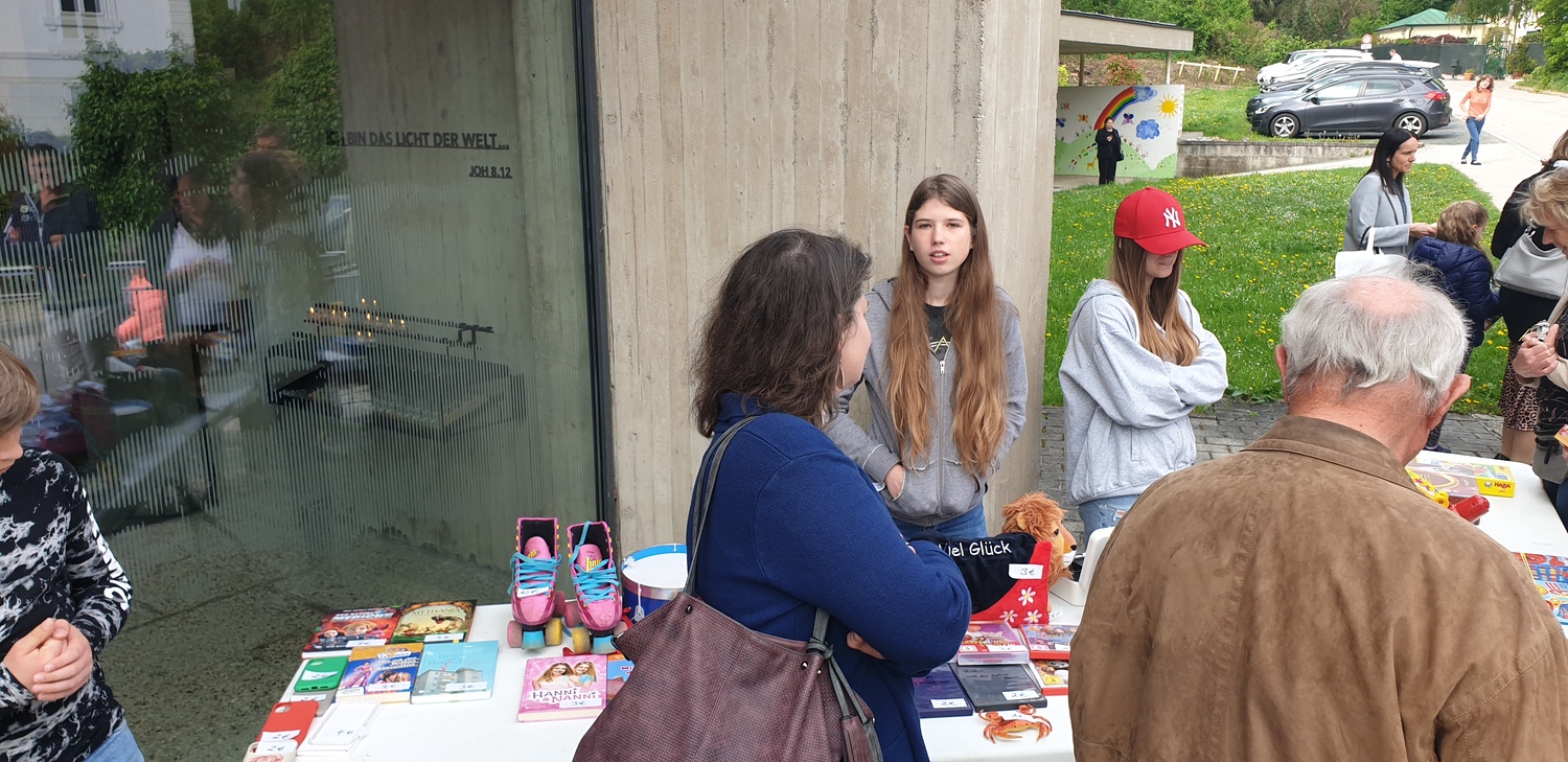 Es herrschte reger Betrieb am Flohmarkt der Firmlinge, denn die Firmlinge boten sehr viele sinnvolle Gegenstände an. Darüber hinaus wollten manche Kirchenbesucher, vom Spielzeug bis zu Gebrauchsgegenständen, Sachen am Flohmarkt erwerben, um so die Firmlinge bei ihrer Benefiz-Aktion zu unterstützen.