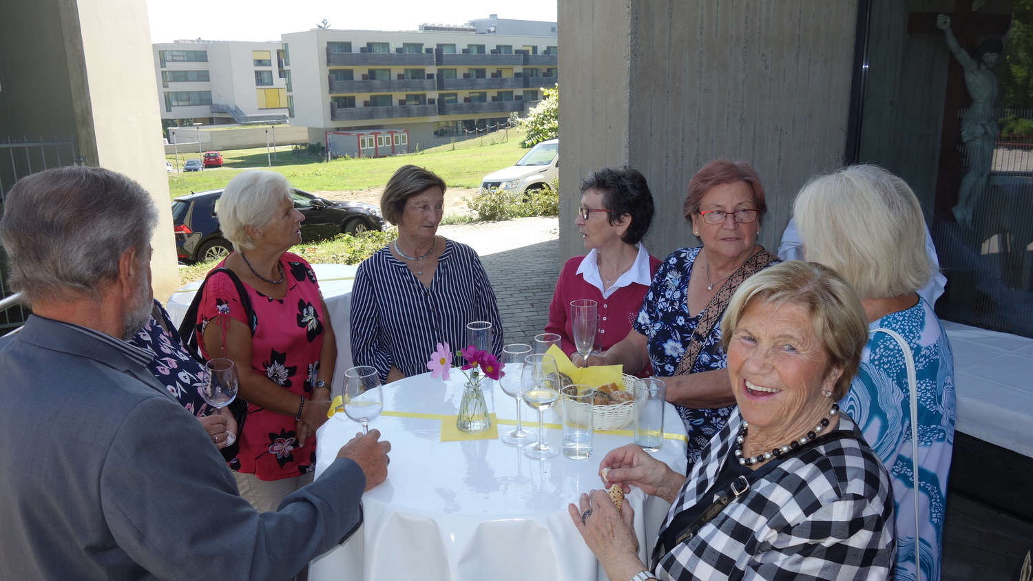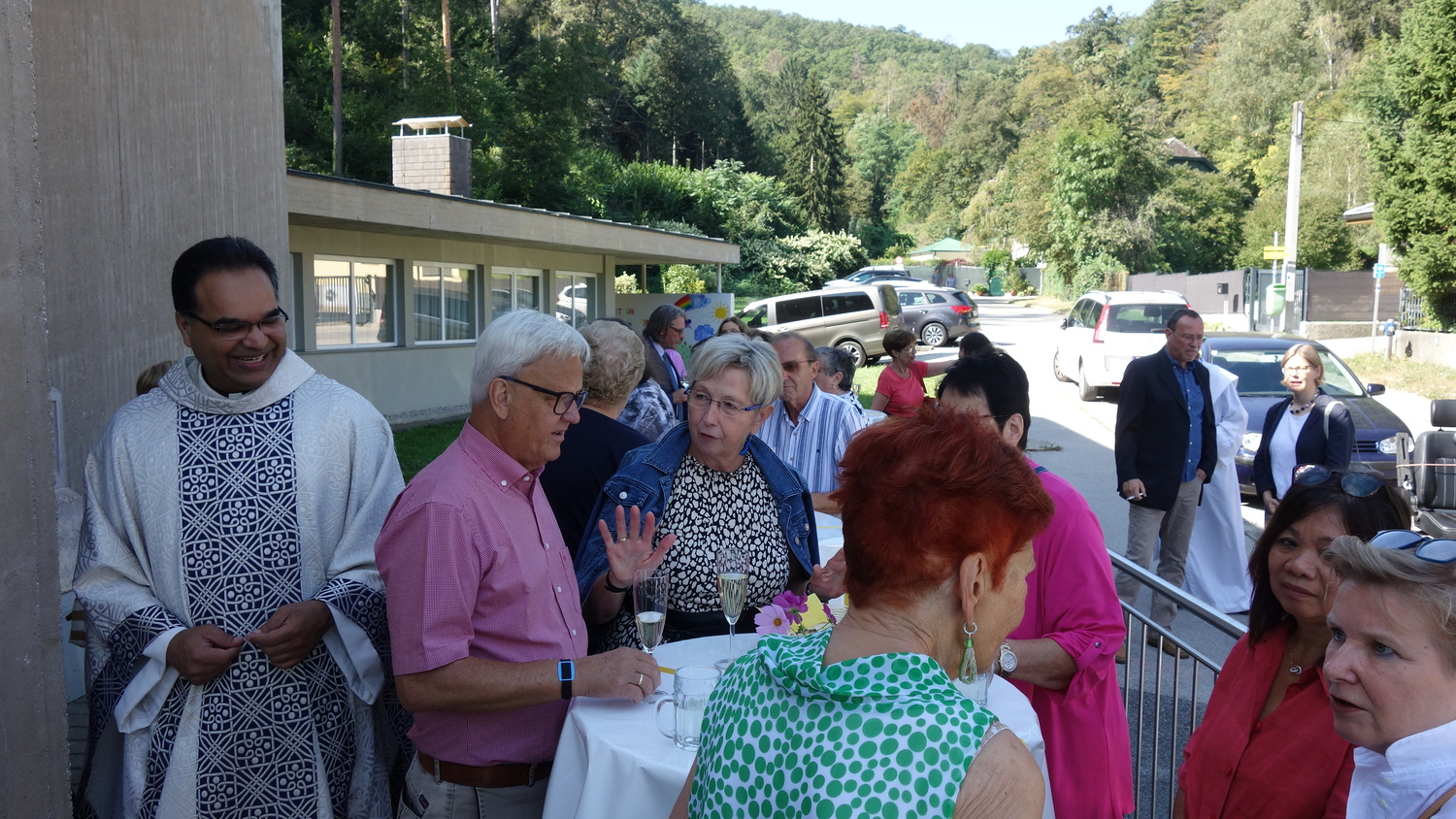 Im Anschluss an die Hl. Messe wurde zu einer Agape geladen, die sich großen Zuspruchs erfreute und bei der es den Gläubigen möglich war mit dem Jubilar zu sprechen. So war es auch den Teilnehmern an der Hl. Messe und der Agape möglich Pater Kuruvila zu seinem Jubiläum zu gratulieren.