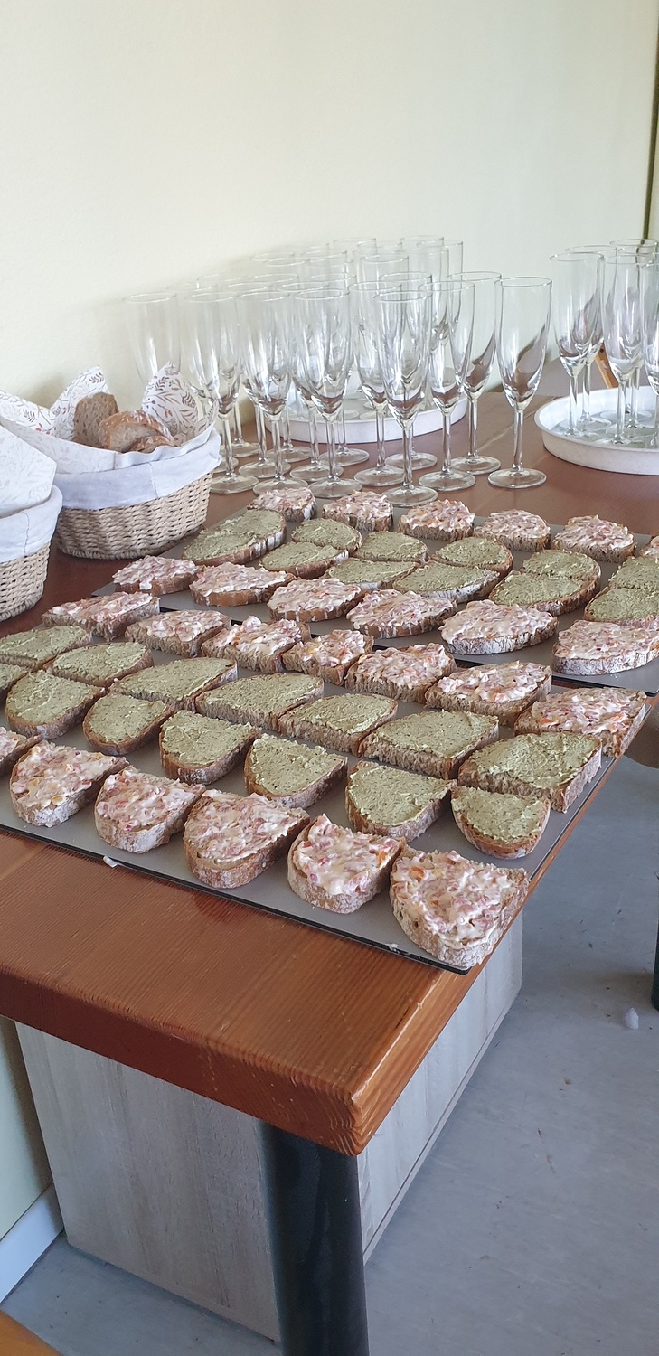 Auch hier fanden die Jubilare einen festlich geschmückten Raum vor. Es gab Aufstrichbrote, mit schmackhaten Aufstrichen von Elisabeth Hanner und Nadja Hutter. Viele Pfarrmitglieder ließen es sich nicht nehmen, für die Jubilare dieses Jahres, ihre Backkünste unter Beweis zu stellen und so gab es sehr delikate Mehlspeisen. Es gab so viel davon, dass den Jubilaren auf Wunsch auch Mehlspeise für eine Feier zu Hause mitgegeben werden konnte.