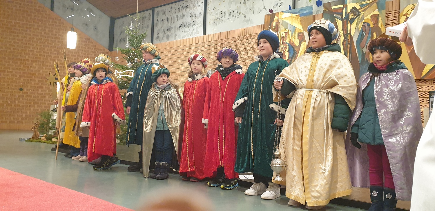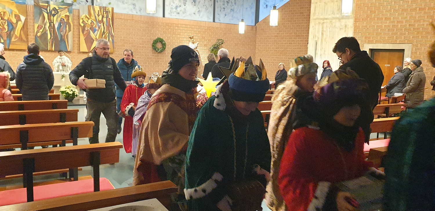 Am 6. Jänner 2024 ab 0830 Uhr war es soweit. Nach der Segnung und Entsendung der "Heiligen Drei Könige" durch Pater Rijo, machten sich diese auf